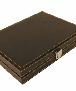 Le Backgammon en Similicuir Brun Italien de Voyage Pliant et Magnétique est une pièce de qualité luxueuse faite à la main. Fabriqué à partir de similicuir brun italien, ce jeu de société est magnétique et fait à la main. Son design élégant et compact est pratique pour le transport et la rangée. Il mesure 23 x 17,5 cm lorsqu’il est fermé, ce qui en fait un jeu de taille compacte qui se glisse facilement dans une valise ou un sac à dos. Une fois ouvert, les pièces sont tenues en place par des aimants pour un pointage précis. Cet ensemble de backgammon en similicuir brun italien est le cadeau idéal pour les passionnés de jeux de société. Les finitions exquises et la fabrication européenne font de ce jeu un excellent choix pour les joueurs avertis. Ce backgammon en similicuir brun italien