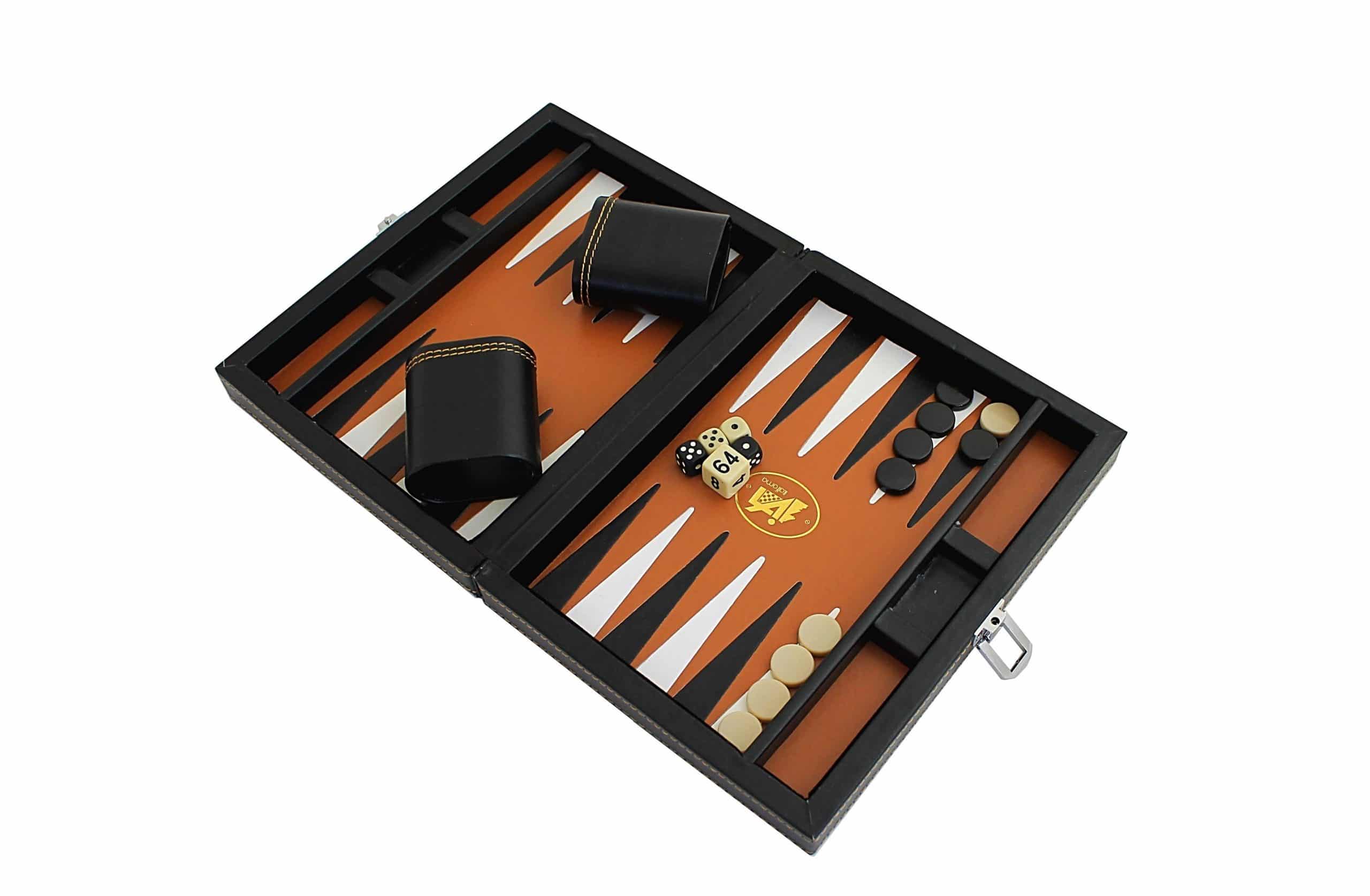 Backgammon en Similicuir Italien Brun Pliant et Magnétique – Le Compagnon Idéal pour les Voyages!