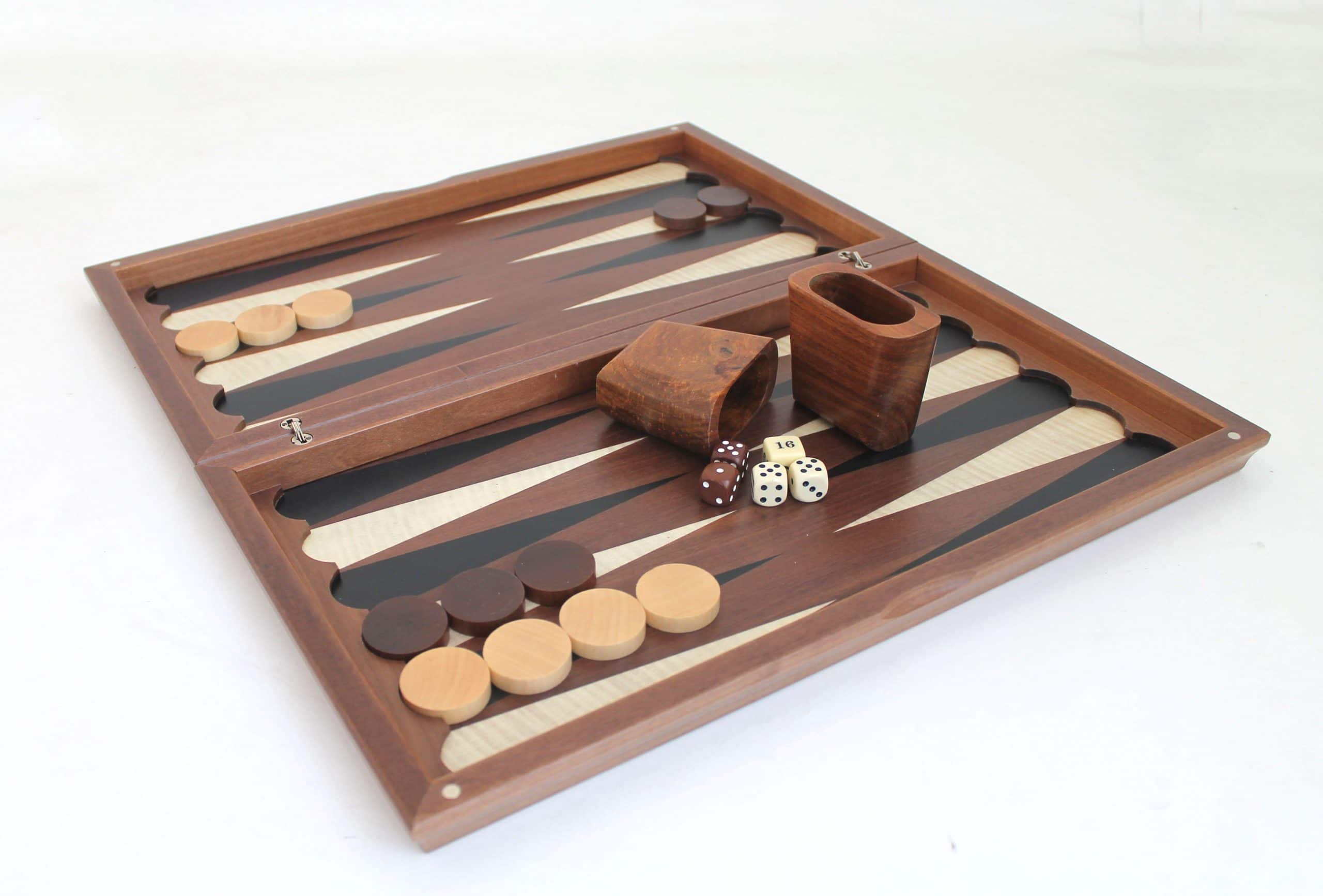 Backgammon Haut de Gamme en Bois d’Eucalyptus – Jeu de Plateau en Bois Exotique de Qualité Supérieure