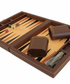 Backgammon Lounge – Similicuir Brun Italien de Voyage Pliant et Magnétique