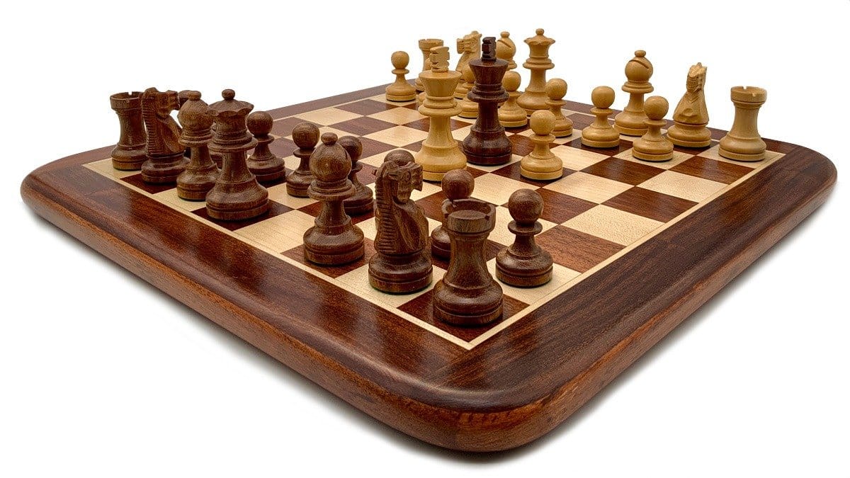 Echiquier En Bois de Rose Doré et Erable avec Jeu d’Echecs – Ensemble Classic XII