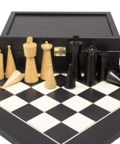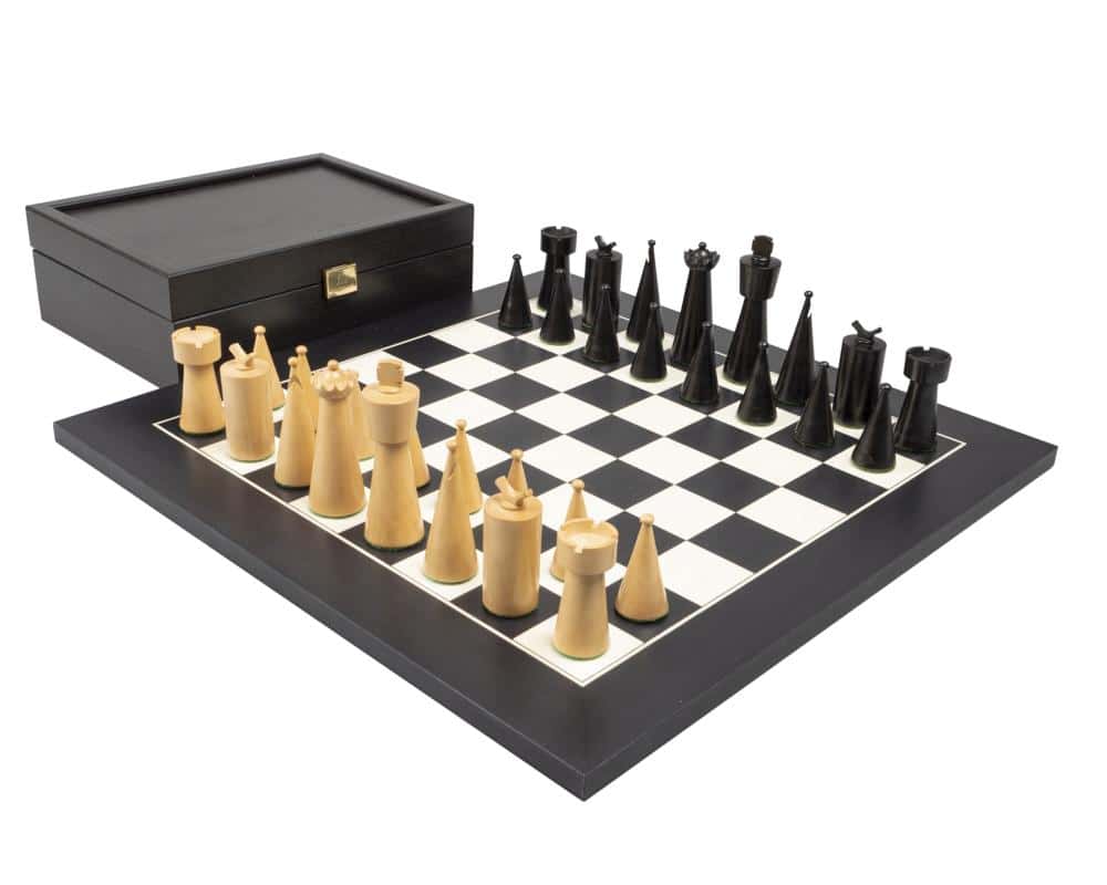 Ensemble Art Deco Echiquier Bois Peuplier Noir/Erable Blanc + Jeu d’Echecs Buis Ebonisé + Coffret Rangement Wengé
