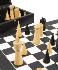 Cet ensemble art déco d’échiquier en bois de peuplier noir et erable blanc ainsi que le jeu d’échecs en buis ébonisé et le coffret de rangement en wengé sont le choix parfait pour les passionnés d’échecs. Fabriqué en Europe, l’échiquier mesure 40 cm de côté et les cases ont une taille de 3,8 cm. Sa finition faite à la main est unique et authentique. Le jeu d’échecs est sculpté à la main et chaque pièce est feutrée. Le roi mesure 8,9 cm de haut et a un diamètre de base de 3 cm. Enfin, le coffret de rangement est fait en wengé et est fabriqué en Europe. Il est l’accessoire idéal pour ranger votre ensemble. Vous ne serez pas déçu de cet ensemble Art Deco. Un ensemble unique, authentique et de qualité européenne. Ne cherchez pas plus lo