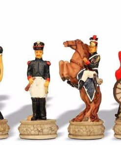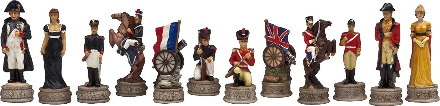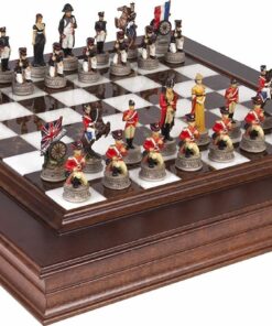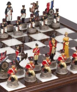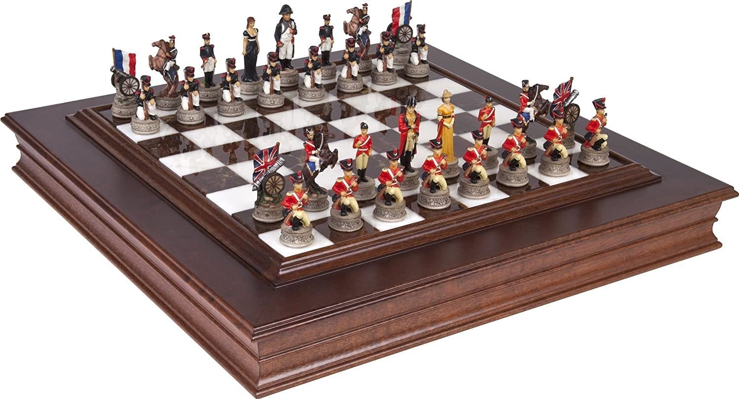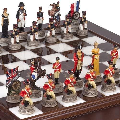 Ensemble Bataille de Waterloo 1 Echiquier en Bois et en Marbre + Jeu d’Echecs Peint à la Main