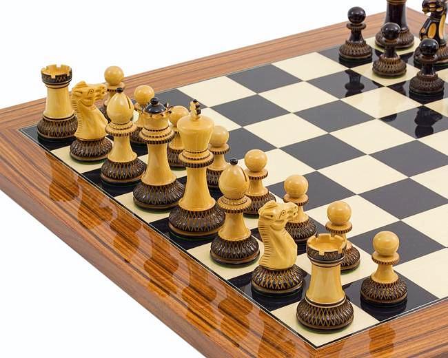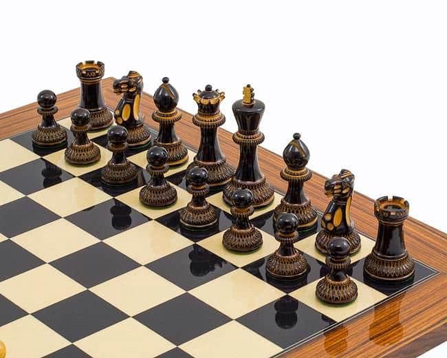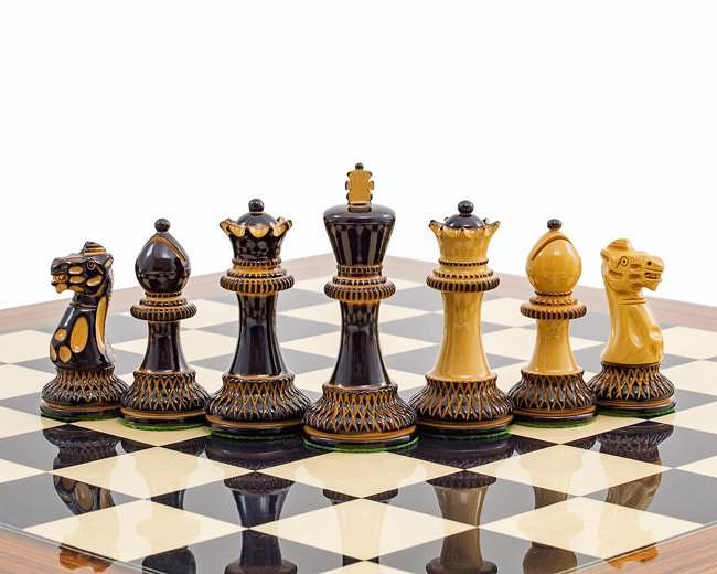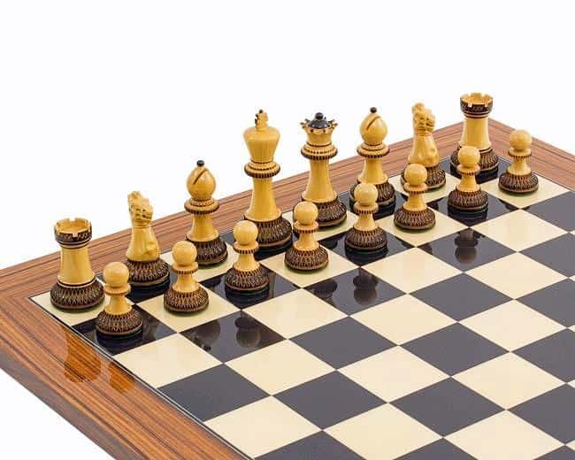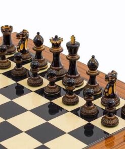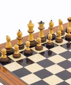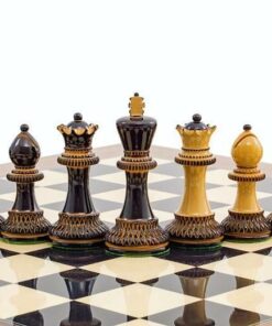 Ensemble Jeu d’Echecs et Echiquier en Bois d’Erable et de Buis – Fleur Noire