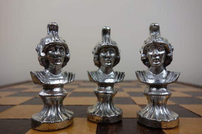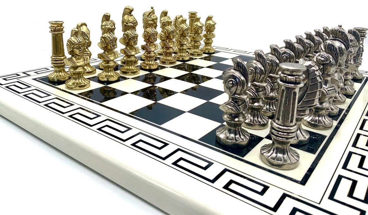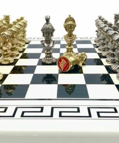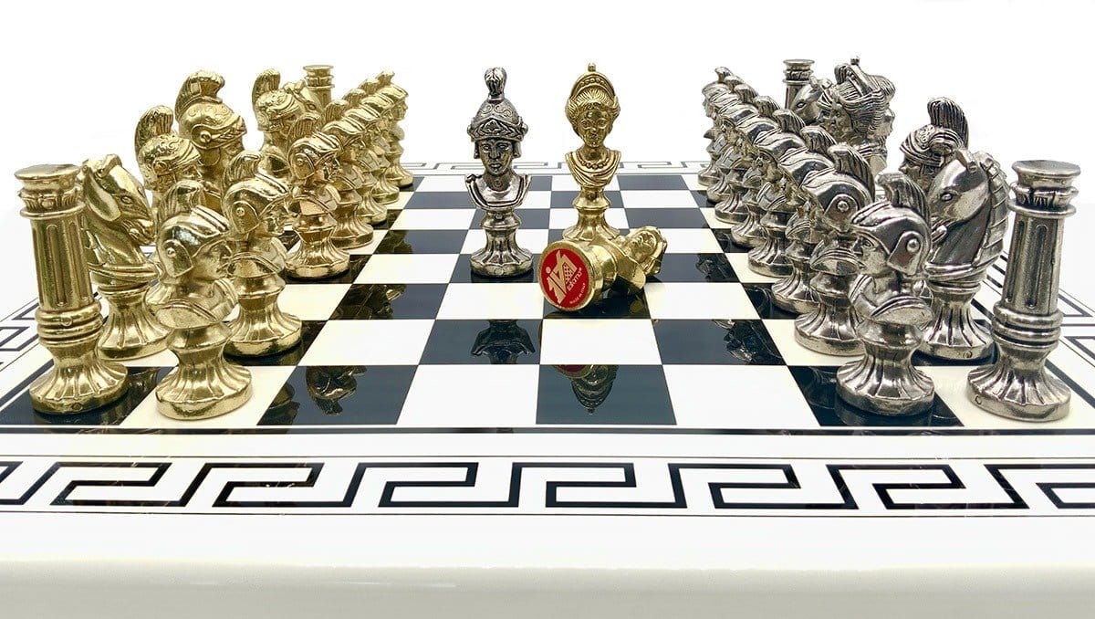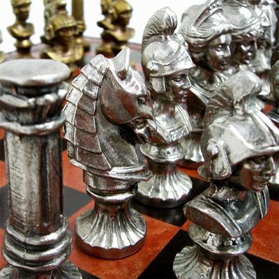 Ensemble Bustes Romains III Echiquier et Jeu d’Echecs en Métal – Jeu d’Échecs Blanc et Noir