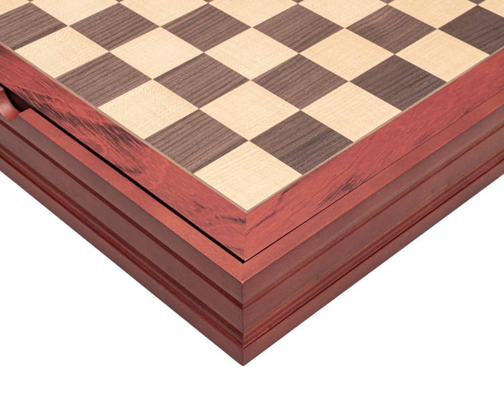 Ensemble Classic VI Echiquier en Bois de Noyer et d’Erable avec Compartiment de Rangement et Jeu d’Echecs en Bois de Rose Doré : Design Intemporel et Élégant
