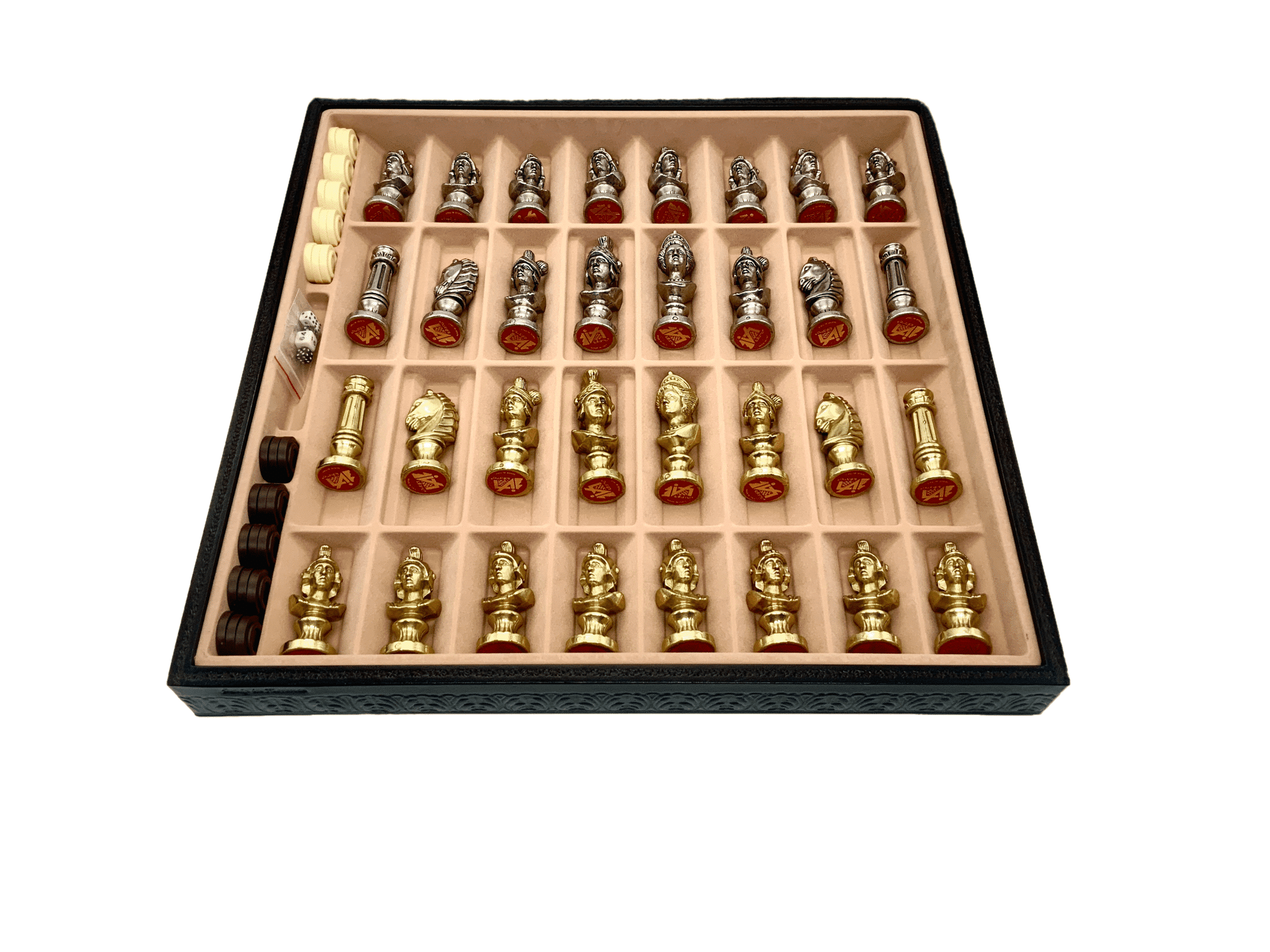 Ensemble d’Echecs en Métal avec Rangement – Bustes Romains II – Jeu d’Echecs Professionnel