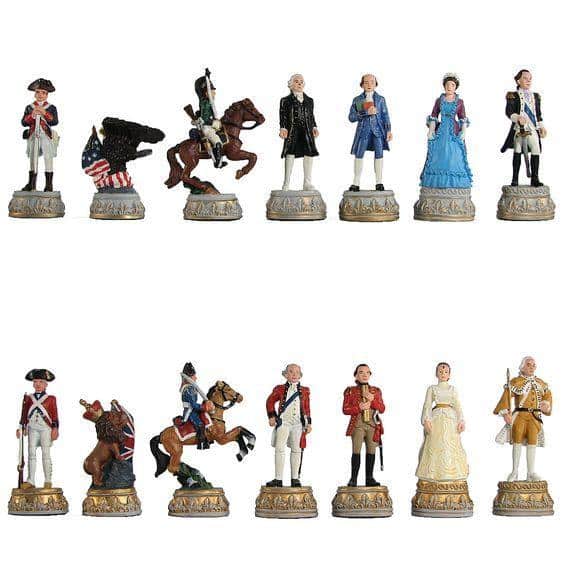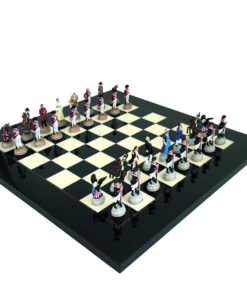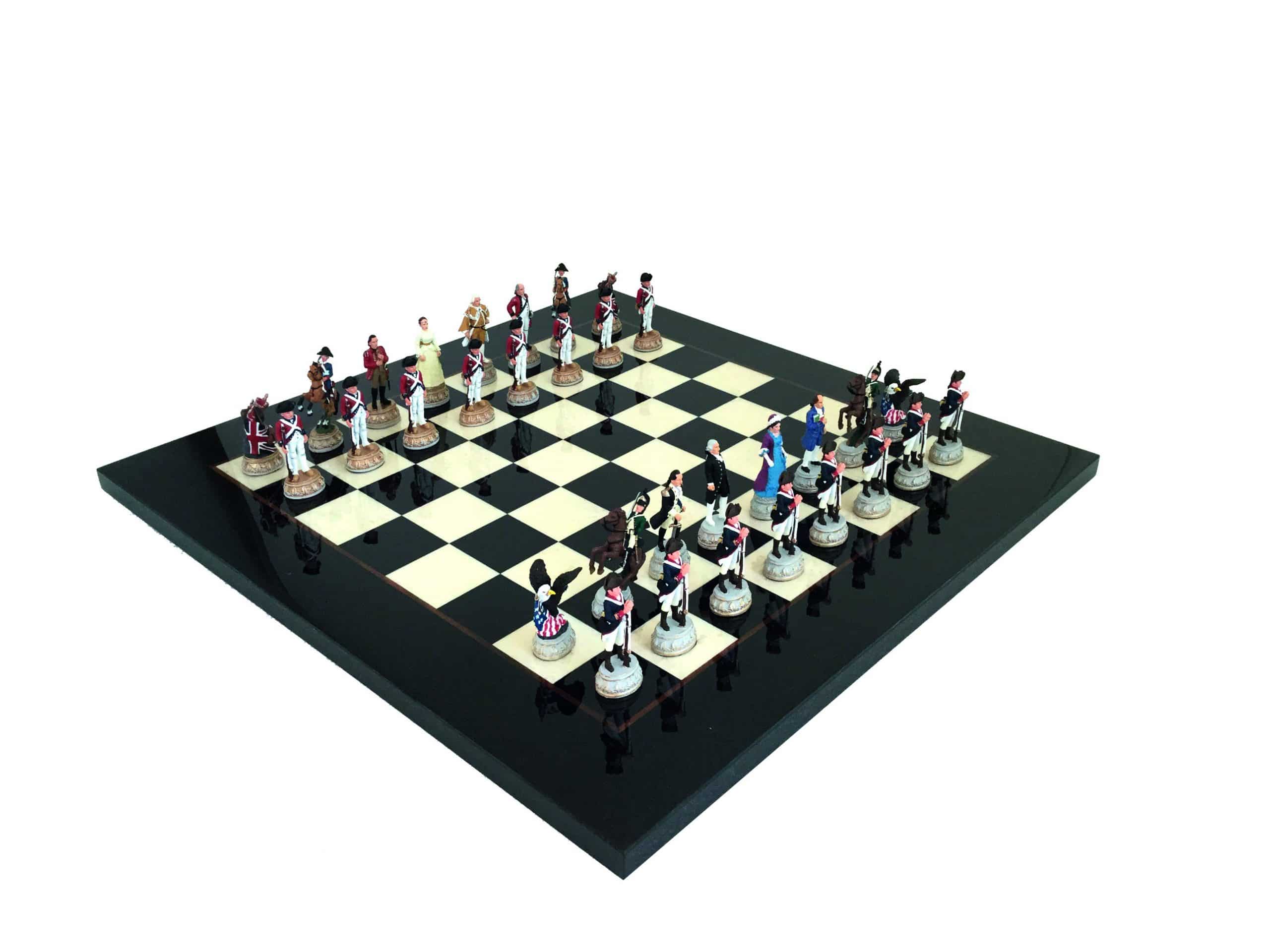 Ensemble Echecs & Echiquier en Bois d’Erable Noir & Jeu d’Echecs en Etain – Guerre d’Indépendance IV