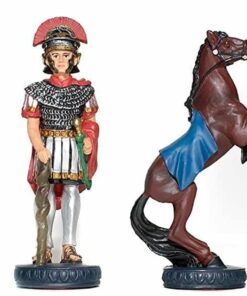 L’ensemble Romains vs Egyptiens II Echiquier en Bois et Jeu d’Echecs en Etain peint à la main est un ensemble remarquable et unique. L’échiquier est fabriqué en bois de frêne gris et érable, avec une taille de 50 x 50 cm et des cases de 5 cm. La finition est laquée brillante pour un look luxueux et élégant. Fabriqué en Europe, il est durable et de qualité. Le jeu d’échecs est fait d’étain et chaque pièce est sculptée et peinte à la main pour un look distinct. La hauteur du roi est de 10,5 cm et il y a 32 pièces pour compléter le jeu. Fabriqué en Europe, ce jeu est de qualité et durable. Ce set est un must-have pour tout amateur d’échecs et de jeux de plateau. C’est un cadeau parfait pour ceux à qui vous tenez. Commandez le vôtre auj