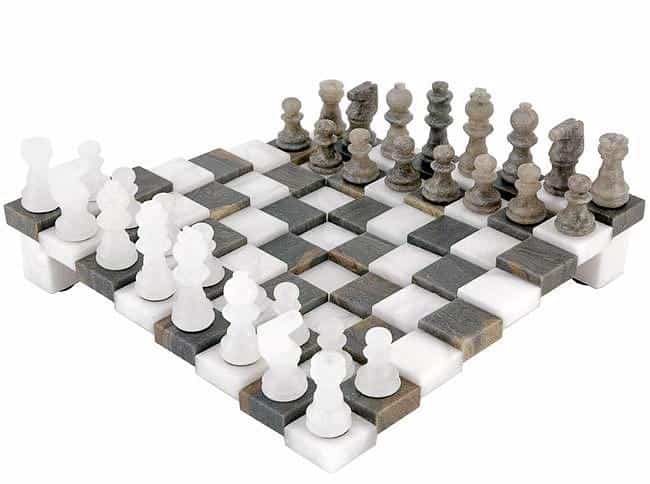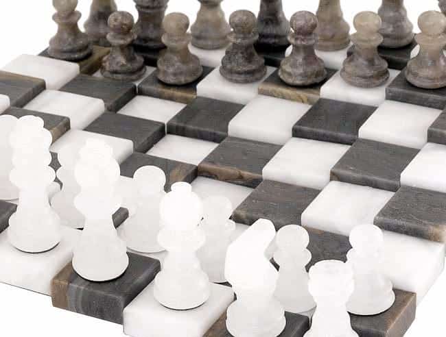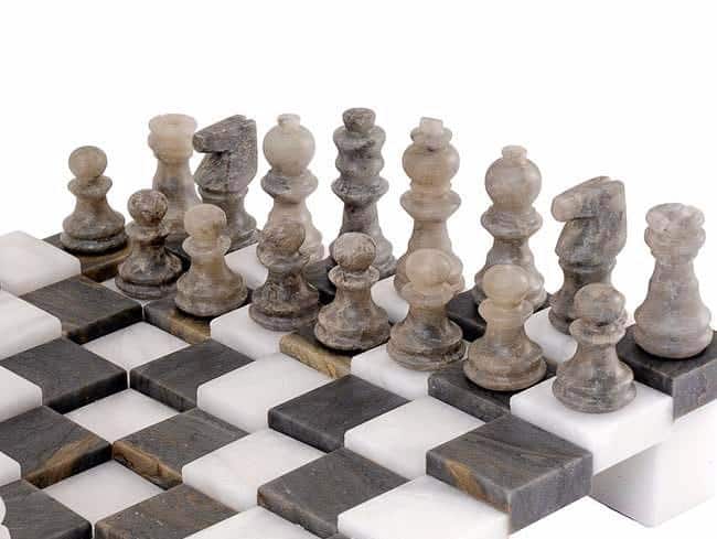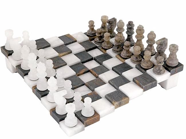 SKU: RC 3 DIMENSIONAL GREY AND WHITE ALABASTER CHESS SET 9.5 INCHES