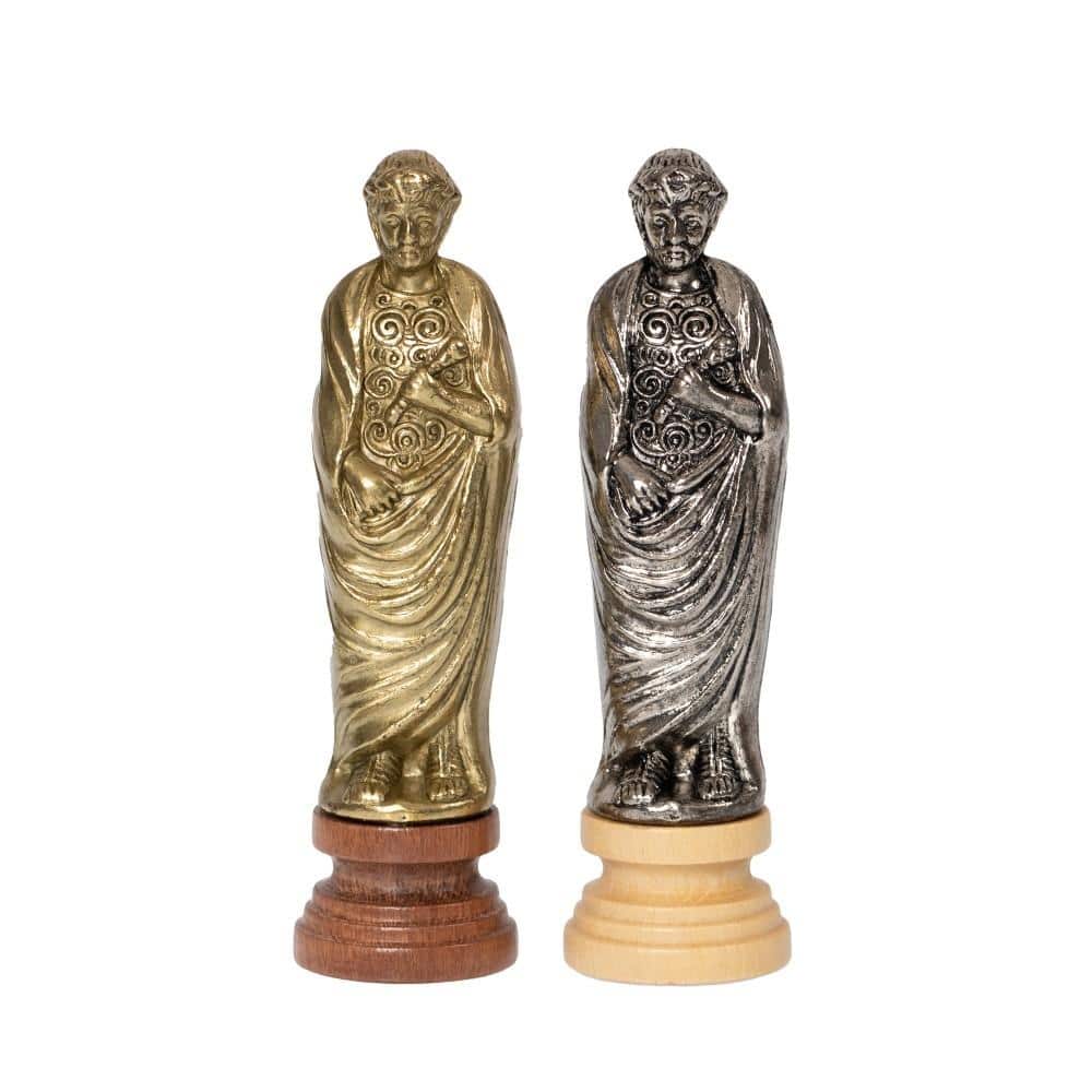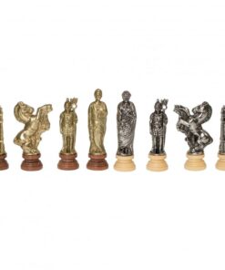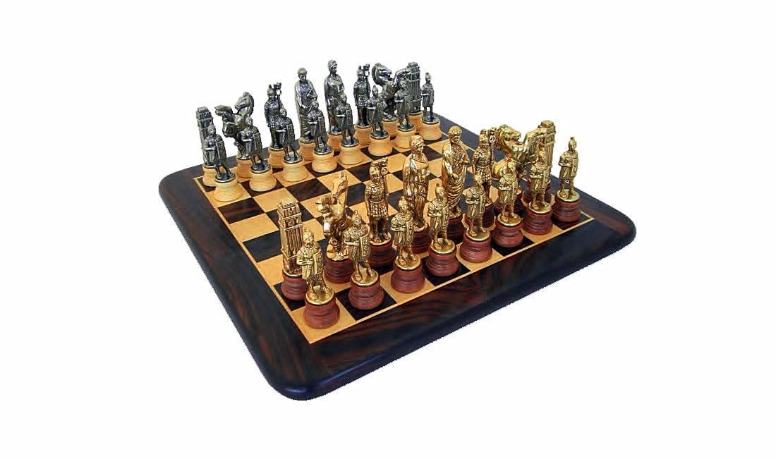 Ensemble Echiquier Arrondi en Bois de Rose et Erable Mat avec Jeu d’Echecs en Bois et Métal – César