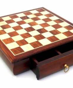 L’ensemble médiéval VII Echequier en Bois de Rose avec Tiroir de Rangement & Jeu d’Echecs en Résine Peint à la Main est un incontournable pour tous les amoureux des jeux d’échecs. L’échiquier est fabriqué en bois de rose massif et mesure 32 x 32 x 6 cm avec des cases de 3,5 cm. Son tiroir de rangement est compartimenté en deux avec un anneau en métal fait à la main. Le jeu d’échecs est fait en résine peinte à la main, avec un roi qui mesure 8 cm de haut et 2,6 cm de diamètre de base. Il est finement sculpté et peint à la main, et est fabriqué en Europe. Apportez une touche authentique à vos parties d’échecs avec l’Ensemble Médiéval VII Echequier en Bois de Rose avec Tiroir de Rangement & Jeu d
