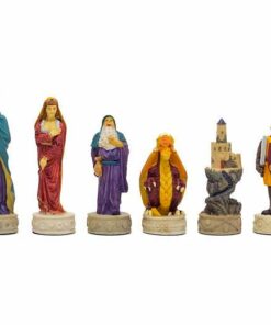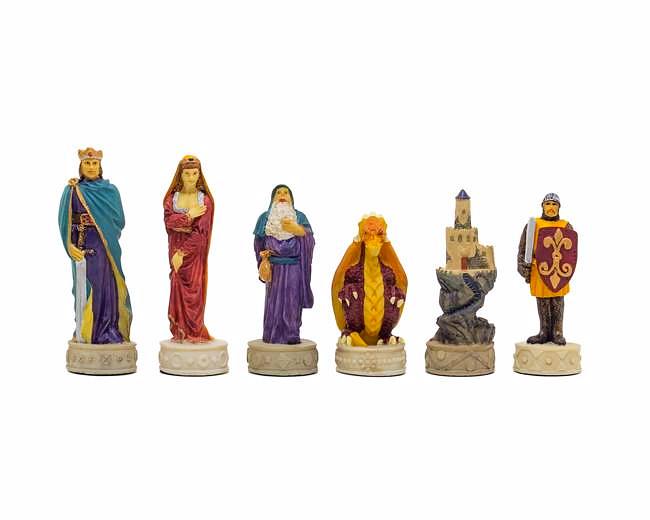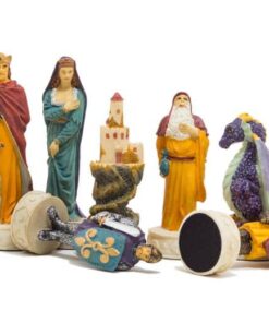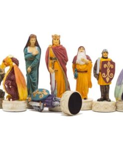 Ensemble Echiquier en Bois de Rose & Jeu d’Echecs en Résine Peint à la Main – Medieval VII