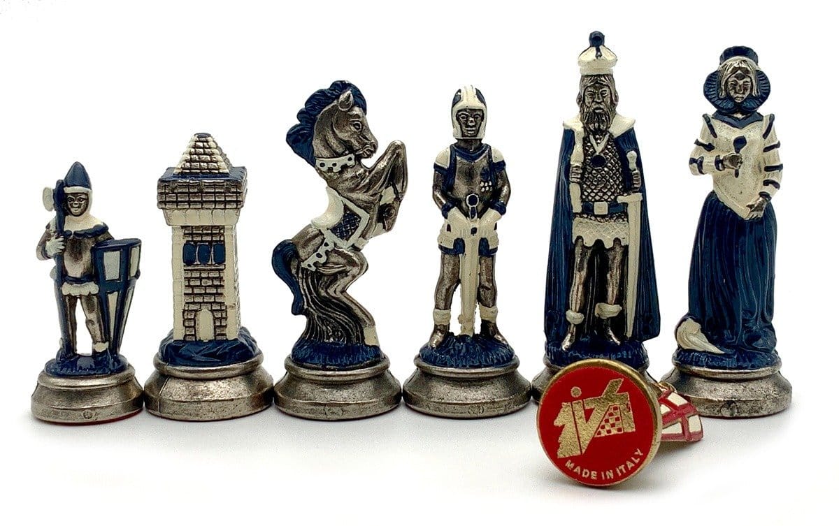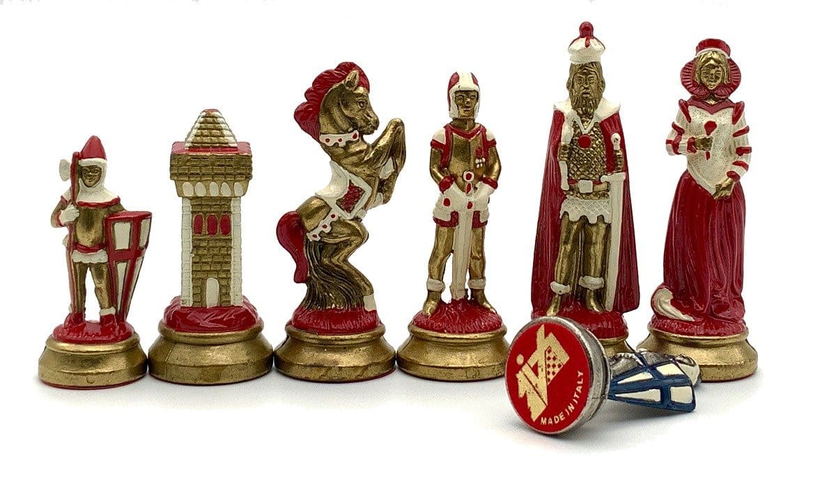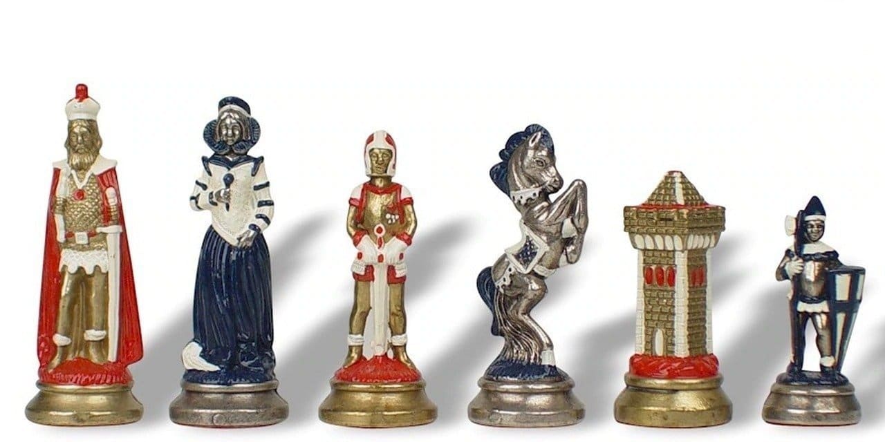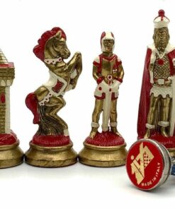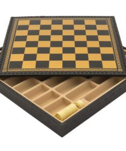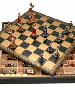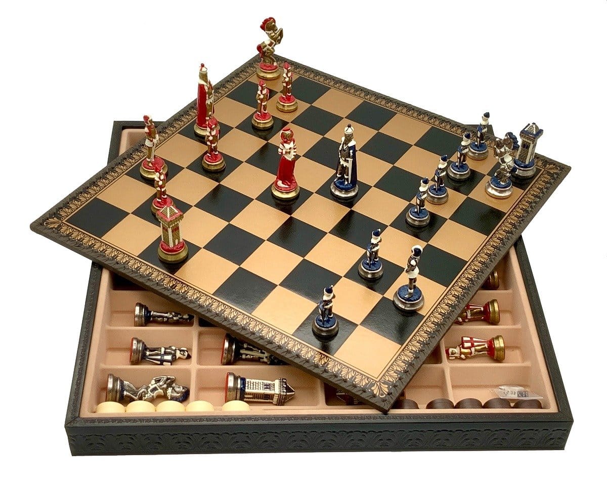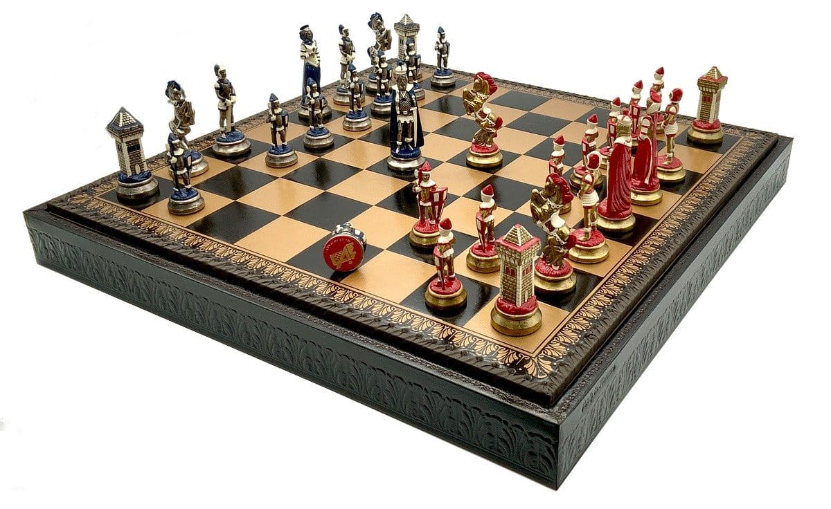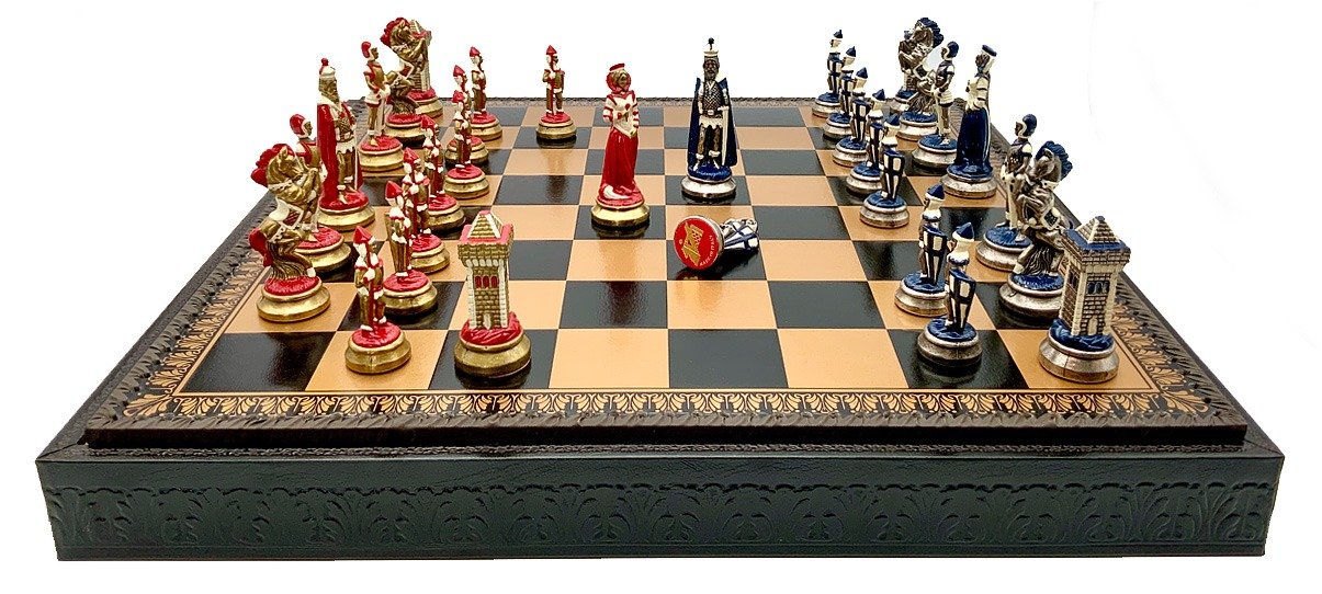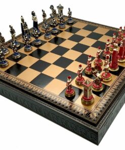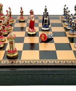Ensemble Echiquier et Jeu d’Echecs Mary Stuart III en Similicuir et Métal Peint à la Main