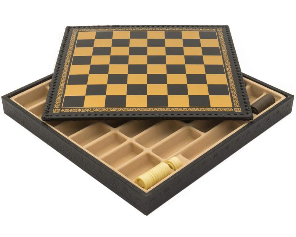 L’ensemble Mary Stuart III Echiquier en Similicuir & Jeu d’Echecs en Métal Peint à la Main est le must pour tous les passionnés d’échecs. Le plateau de jeu est fabriqué en similicuir de 48 x 48 x 5,5 cm et les cases mesurent 5,2 cm. La finition est teintée en noir et possède un compartiment de rangement feutré individuel intégré. Le jeu d’échecs est composé de métal massif et chaque pièce est sculptée et peinte à la main. Le roi mesure 9,4 cm de haut et 3,3 cm de diamètre de base. La base est feutrée et les 32 pièces sont fabriquées en Europe. Si vous recherchez un jeu de qualité, l’ensemble Mary Stuart III est l’idéal. Offrez-vous une partie d’échecs des plus passionnantes grâce à cet ensemble. Ne cherchez