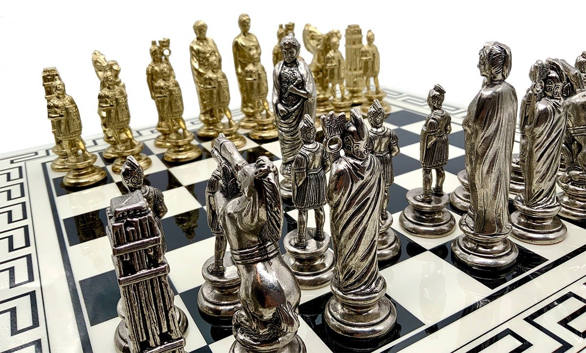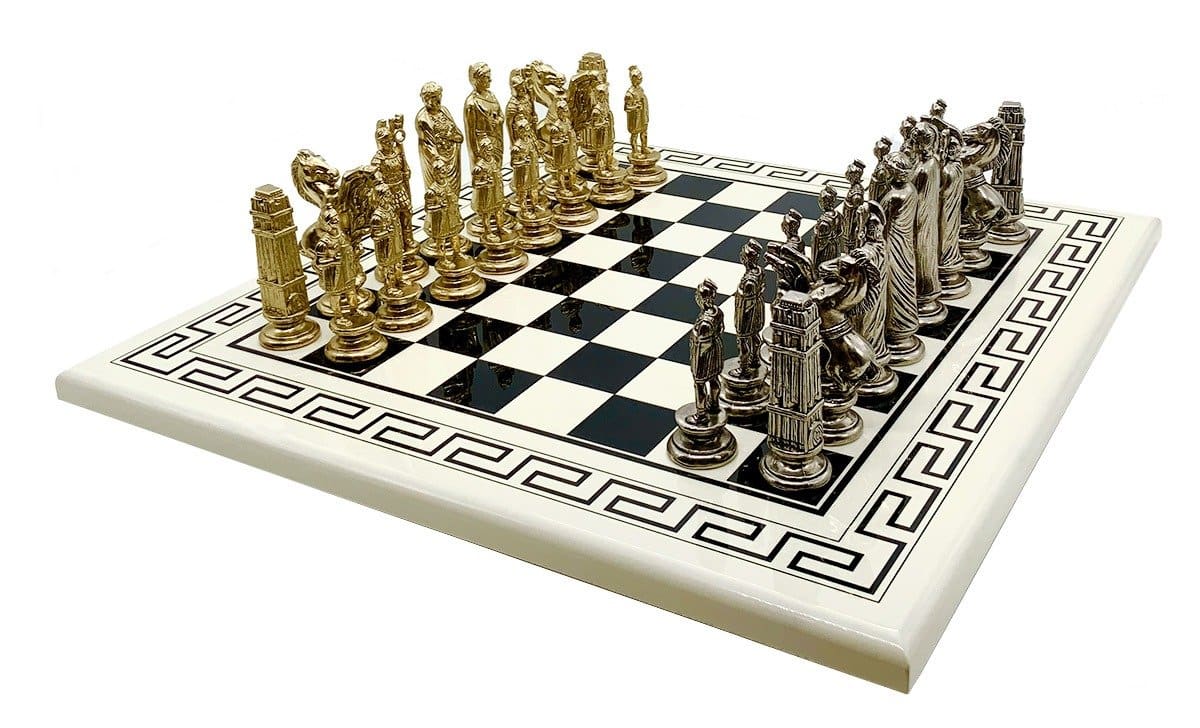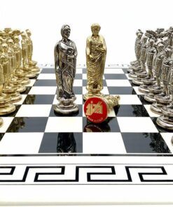 L’ensemble César III Grand Echiquier en Bois Blanc et Noir et Pièces d’Echecs en Métal est à la fois élégant et robuste. L’échiquier est fabriqué à partir de bois massif de style grec, mesurant 50 x 50 x 2 cm et fini d’un laqué brillant. Le jeu d’échecs est fabriqué en métal massif, avec un roi mesurant 11,7 cm de haut et un diamètre de base de 3,5 cm. Les pièces sont finement sculptées et ciselées à la main. Avec 32 pièces, l’ensemble César III Grand Echiquier en Bois Blanc et Noir et Pièces d’Echecs en Métal est une excellente façon de jouer à l’échecs tout en restant fidèle à l’artisanat européen. Un produit de qualité, durable et durable, à posséder et à apprécier p