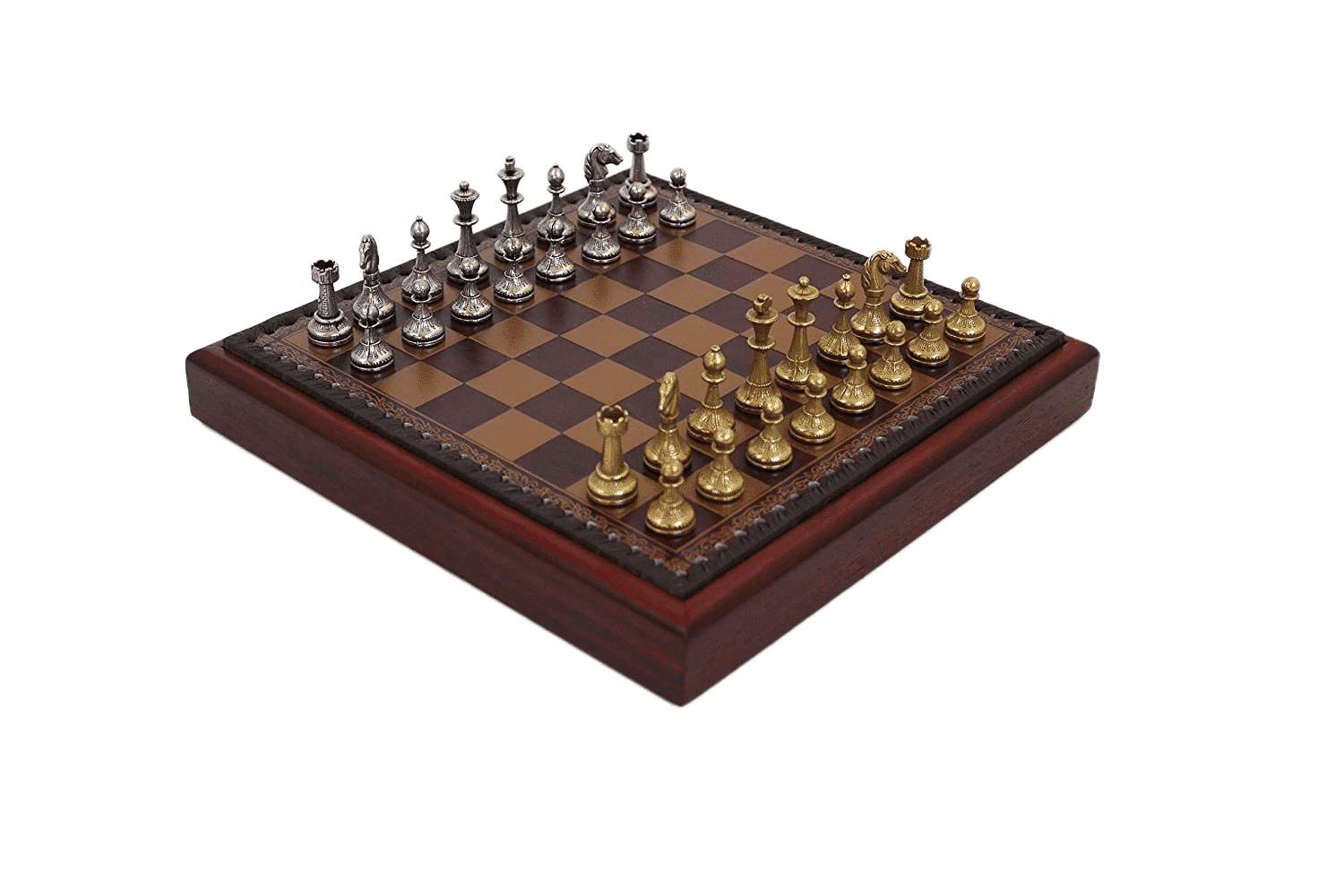 L’Ensemble Mignon Flower VIII Echiquier Rouge avec Rangement et Jeu d’Echecs en Métal est un produit unique conçu à la main en Europe. L’échiquier est conçu en similicuir et mesure 35x35x4 cm pour chaque case de 3,5 cm. La finition est teintée en rouge avec un compartiment de rangement sous le plateau pour ranger les pièces. Le jeu d’échecs est en métal massif avec une hauteur du roi de 4,8 cm et un diamètre de base du roi de 1,9 cm. Le jeu comprend 32 pièces avec une base en feutre et une finition sculptée et ciselée à la main. L’ensemble est parfait pour les amateurs d’échecs et pour tous ceux qui apprécient les produits artisanaux. Offrez-vous le meilleur des produits européens de qualité et profitez de votre expérience d’échecs unique.