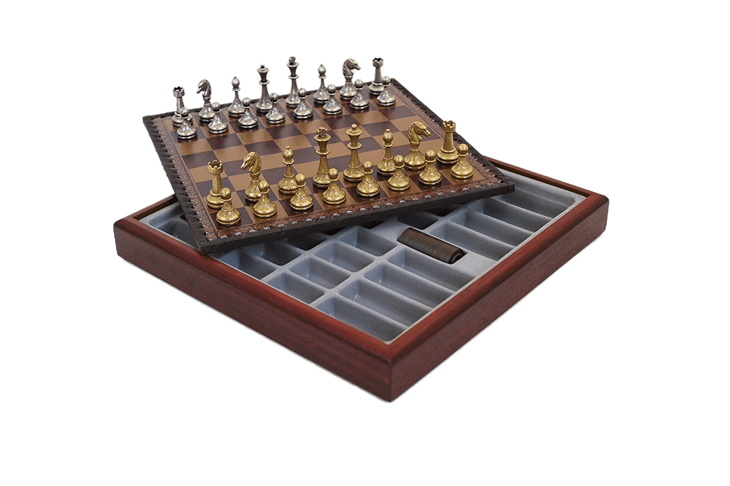 Ensemble Echiquier Métallique avec Rangement et Jeu d’Echecs Rouge Mignon Flower VIII