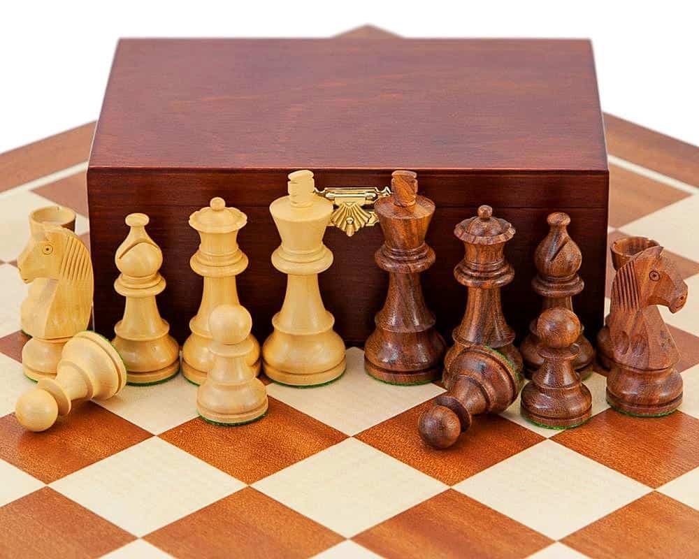 Ensemble Grand Championship Echiquier en Bois d’Erable et Acajou, Coffret de Rangement en Bois de Bouleau – Jeu d’Echecs en Bois de Rose