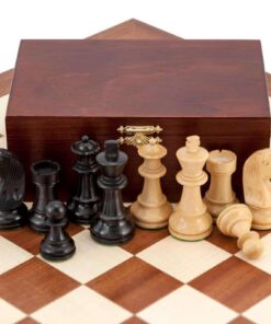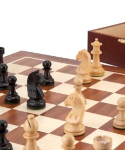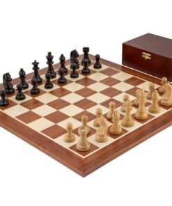 Ensemble Grand Championship II Echiquier en Bois d’Acajou et d’Erable – Jeu d’Echecs en Bois de Buis et Buis Ebonisé avec Coffret de Rangement en Bois de Bouleau
