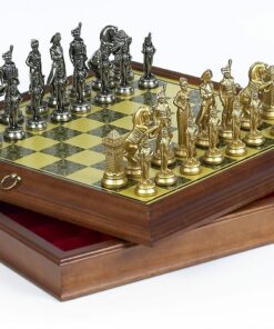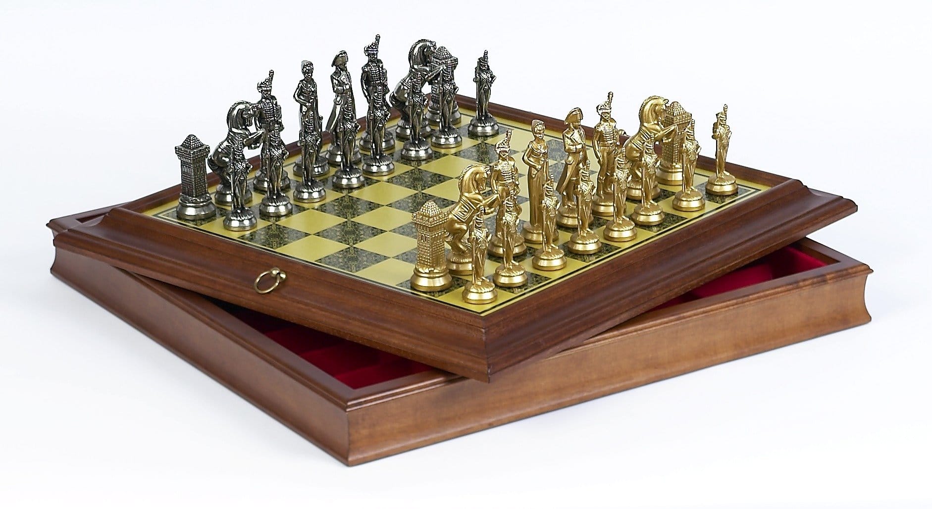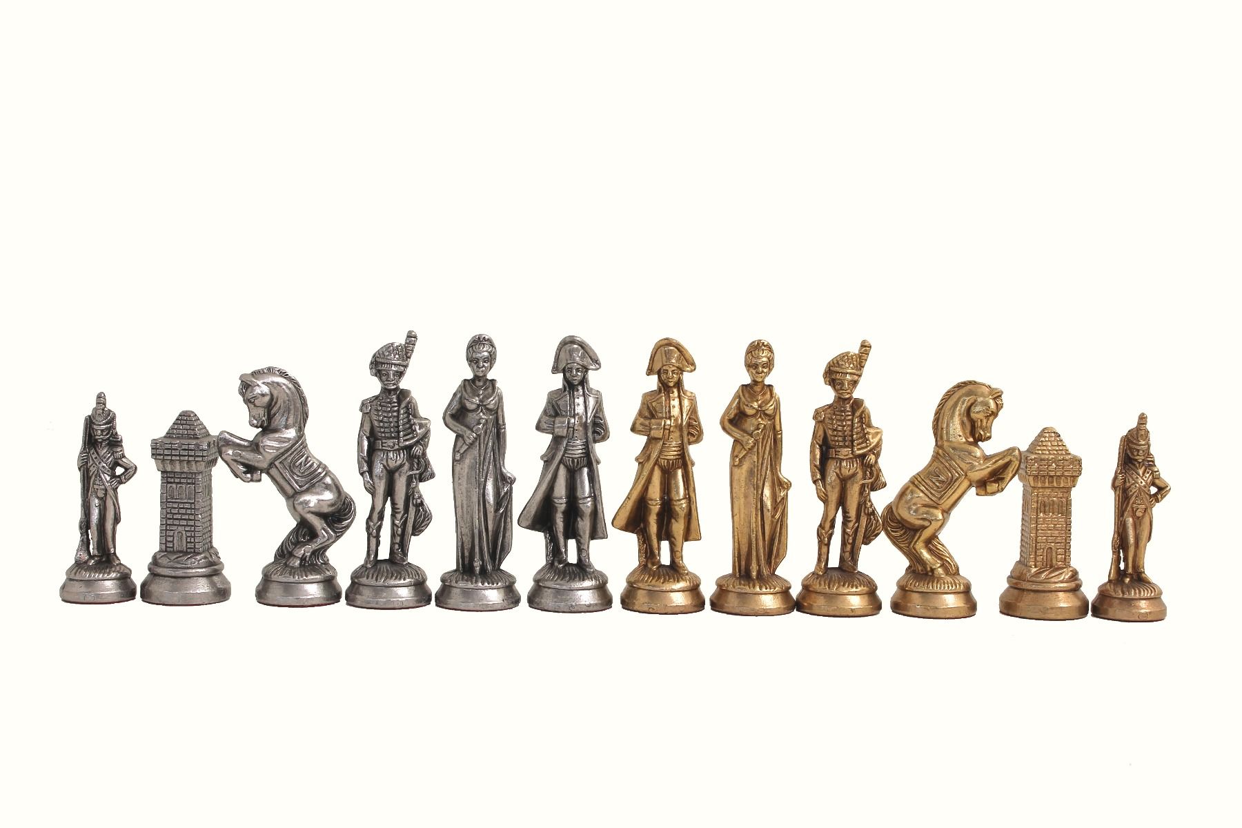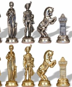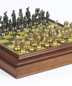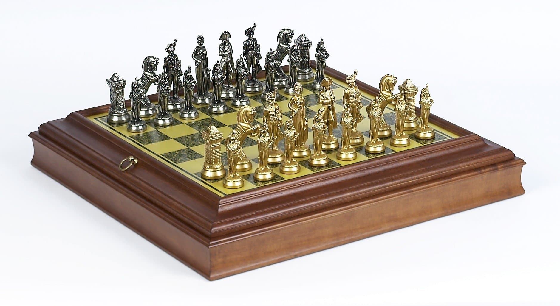 Ensemble Grand Echiquier en Bois Original et Jeu d’Echecs en Métal – Napoléon IV