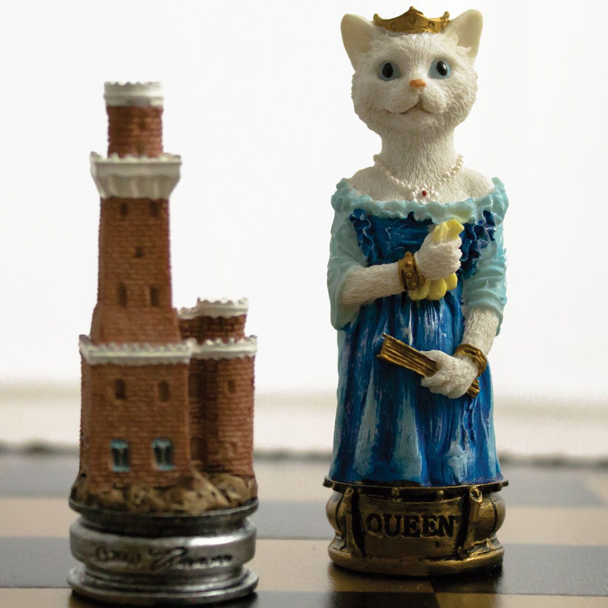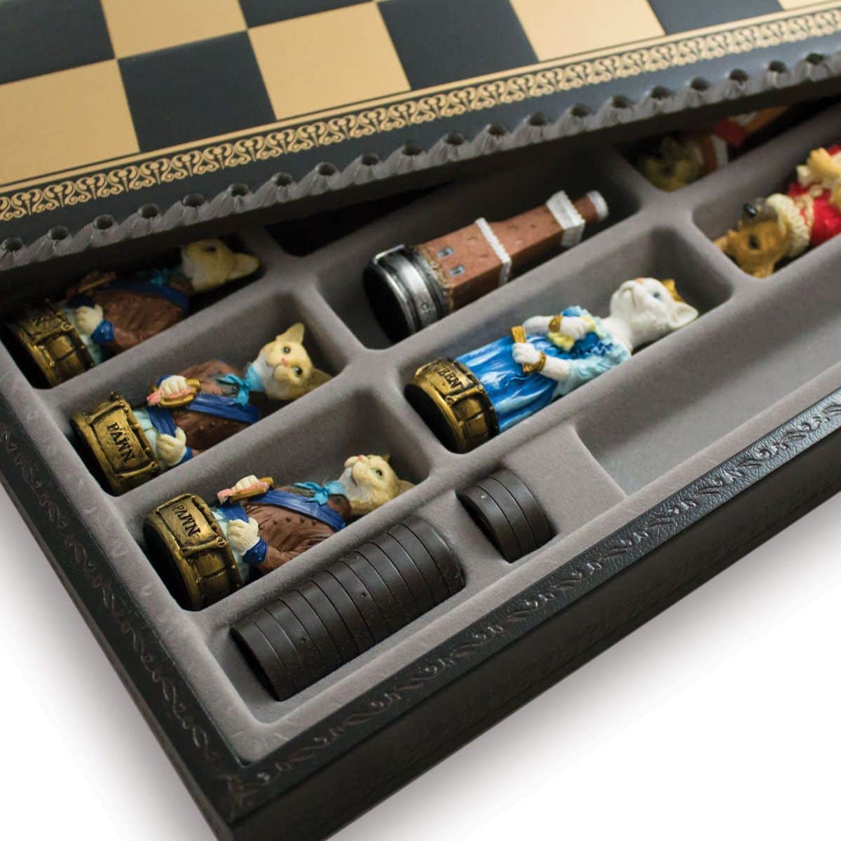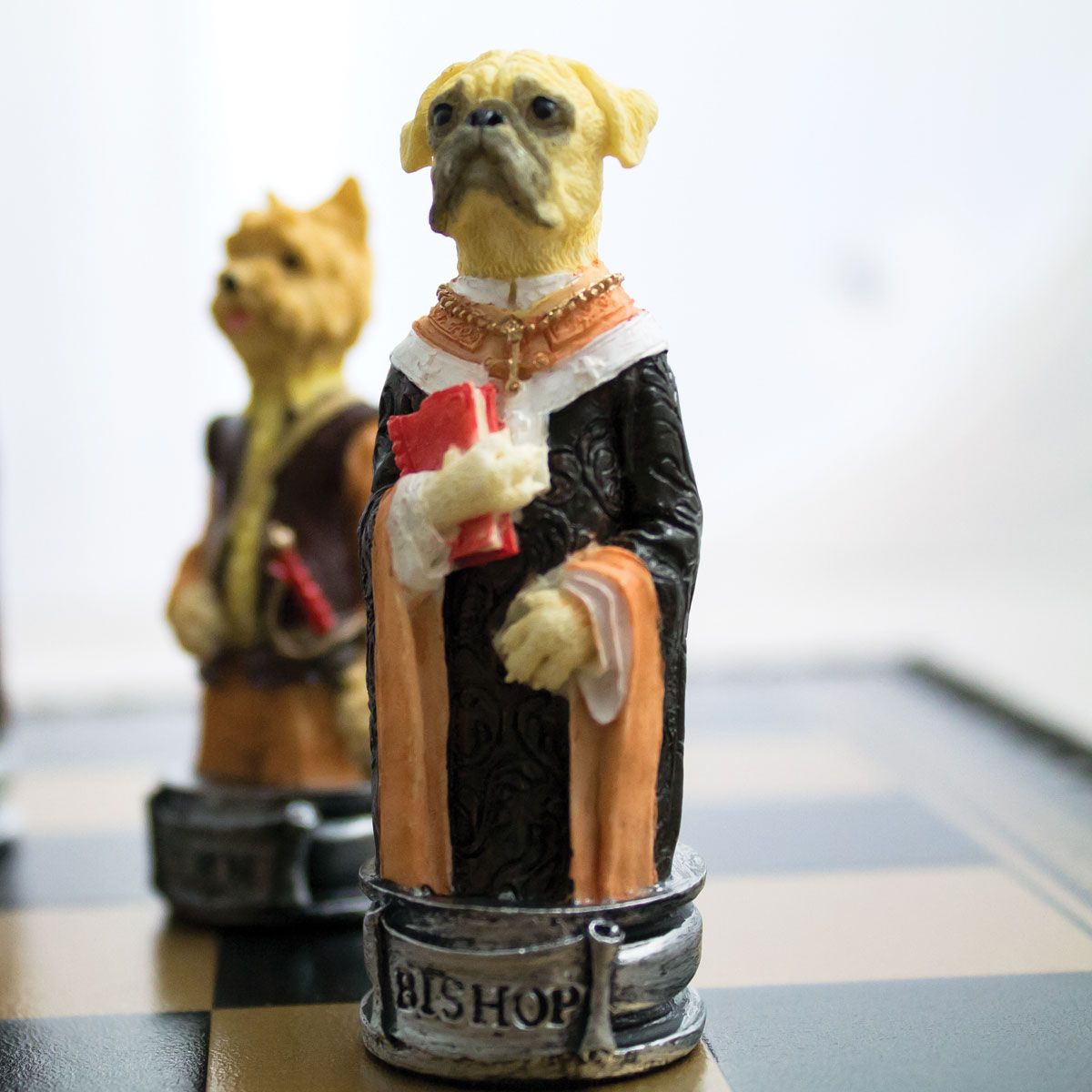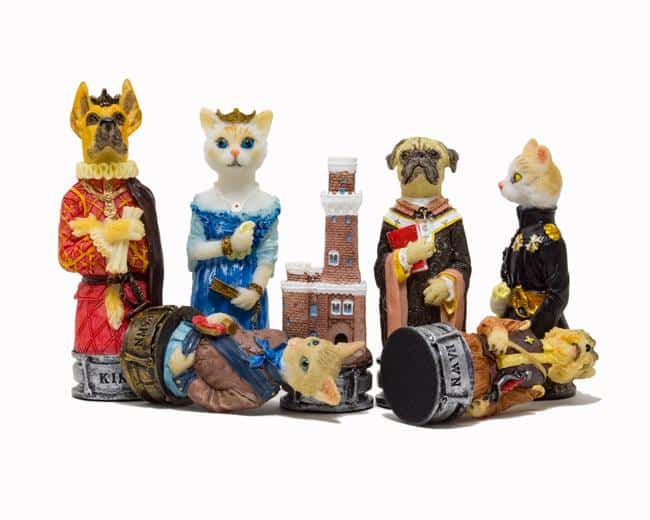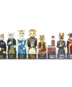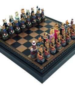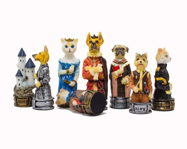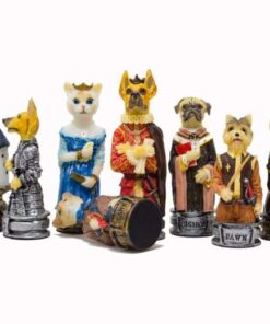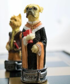 Ensemble Jeu d’Echecs en Résine et Echiquier en Similicuir pour Chiens et Chats