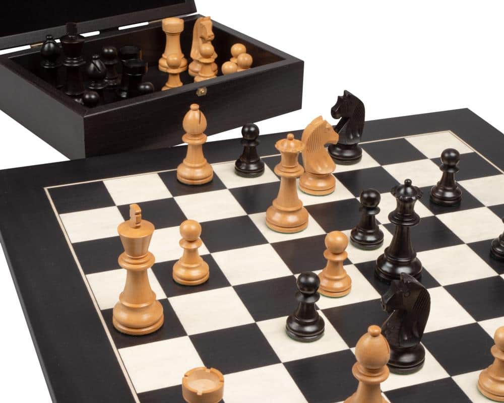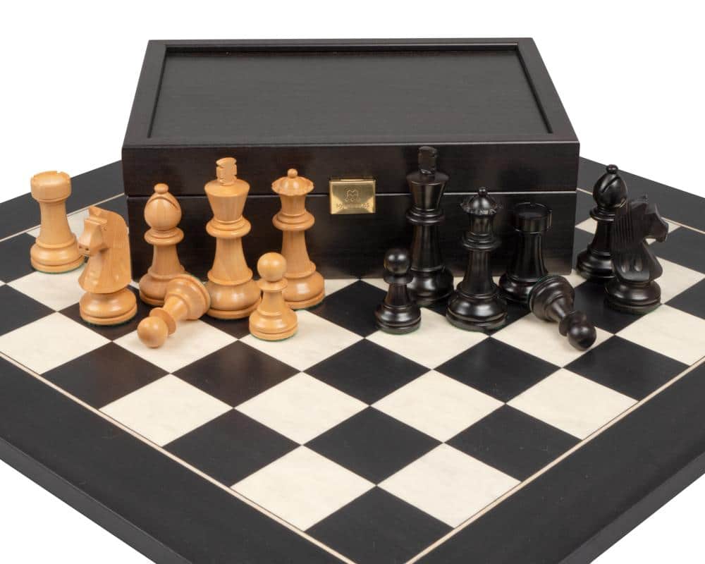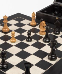 Ensemble Jeu d’Echecs et Echiquier en Bois d’Erable et de Buis – Fleur Noire