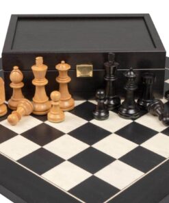 L’Ensemble Knight Design Echiquier en Bois de Peuplier Noir et Erable Blanc & Jeu d’Echecs en Bois de Buis Ebonisé avec Coffret de Rangement est une pièce unique et impressionnante. L’échiquier est fabriqué à la main en Europe et en utilisant des matériaux de qualité supérieure: peuplier noir et erable blanc. Il mesure 45 x 45 cm avec des cases de 4,5 cm. Le jeu d’échecs est aussi fabriqué en Europe en utilisant du buis ebonisé. La hauteur du roi est de 8 cm et le diamètre de la base du roi est de 3 cm. Il y a 32 pièces dans le jeu d’échecs. Le coffret de rangement est fabriqué en Europe en utilisant du wengé. Ce produit est livré avec un coffret de rangement. Le produit est livré prêt à l’emploi et facile à assemb
