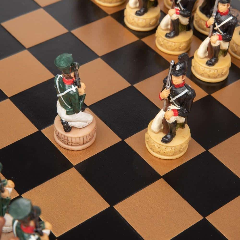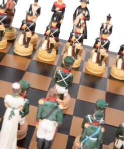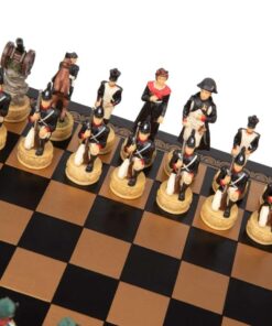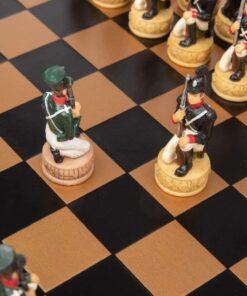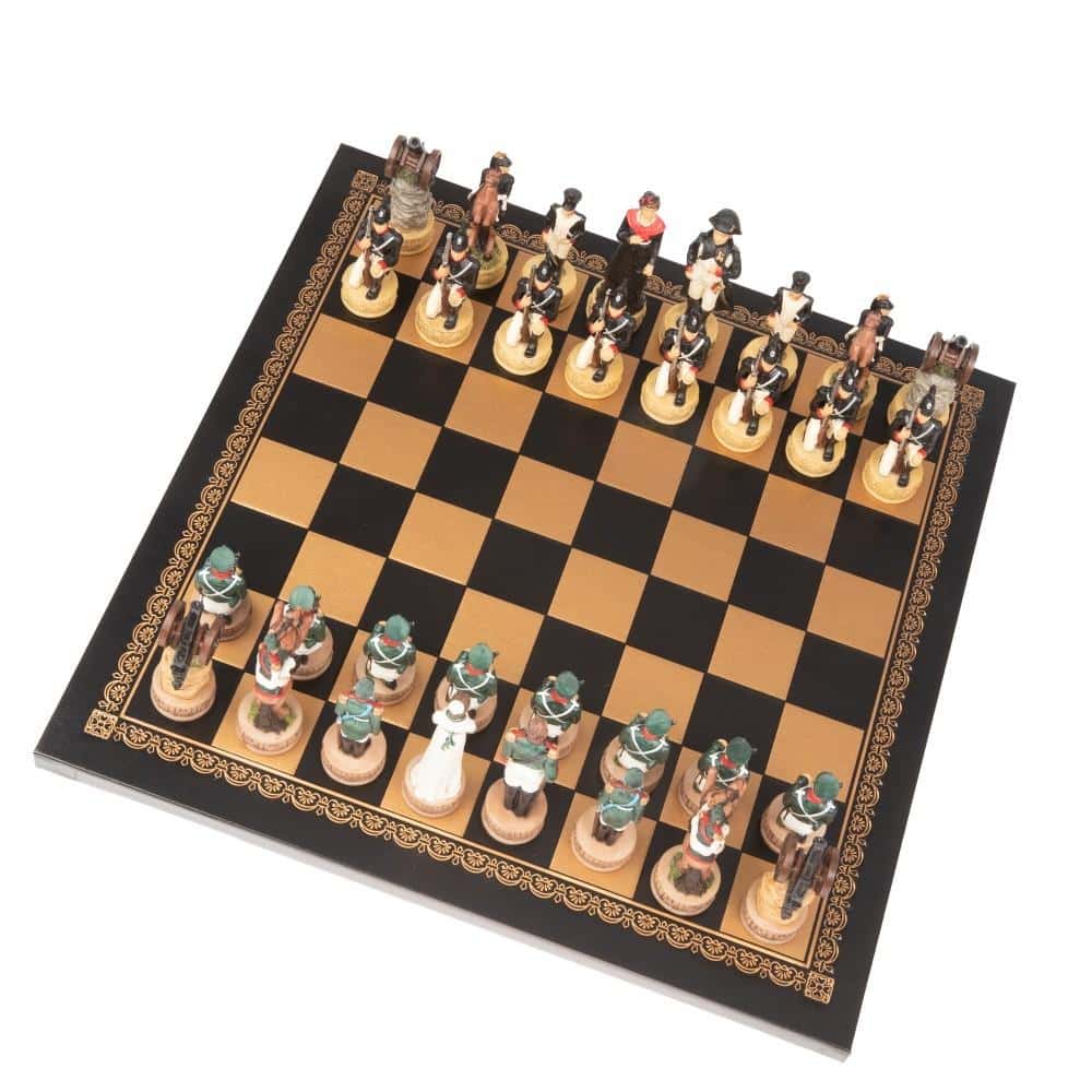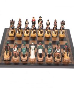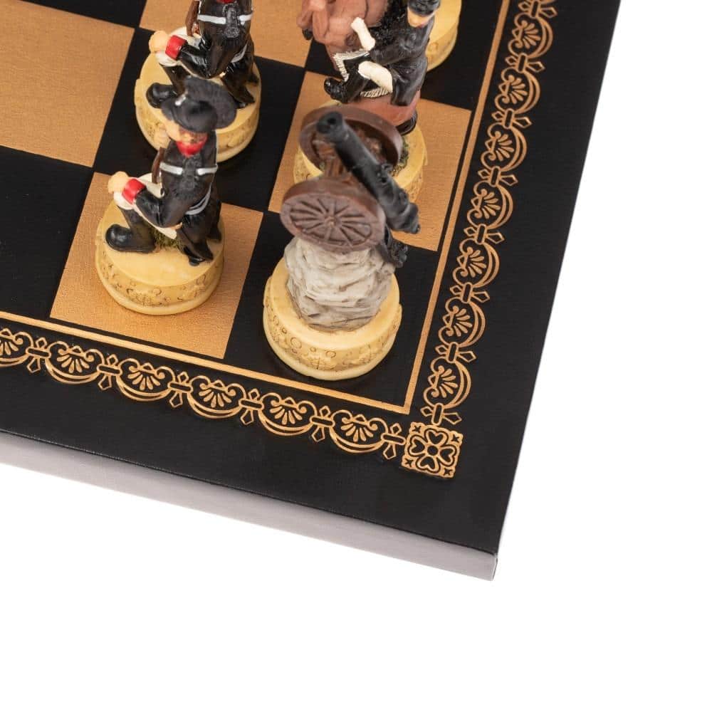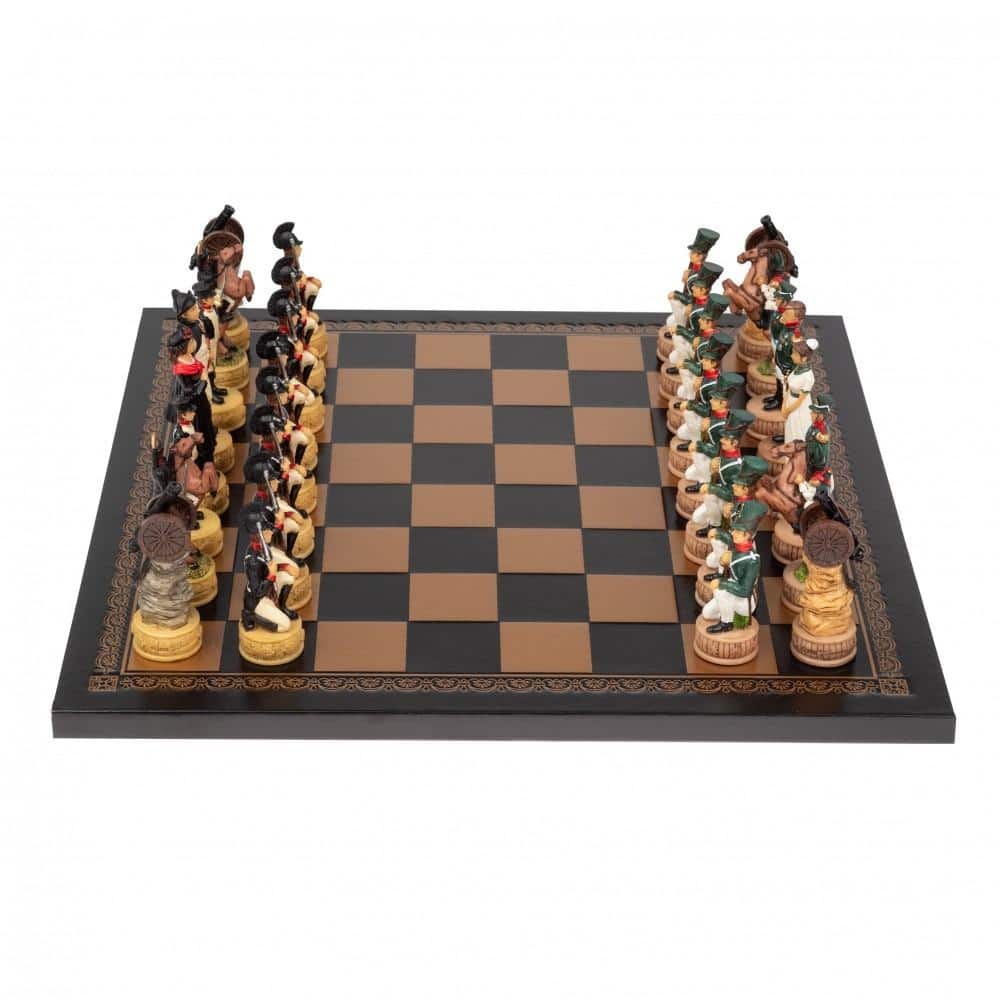 Ensemble Jeu d’Echecs Napoléon Campagne de Russie II en Résine et Echiquier en Similicuir Noir