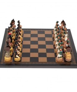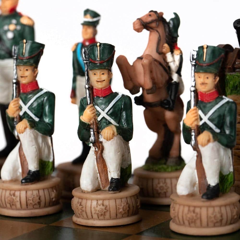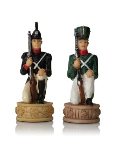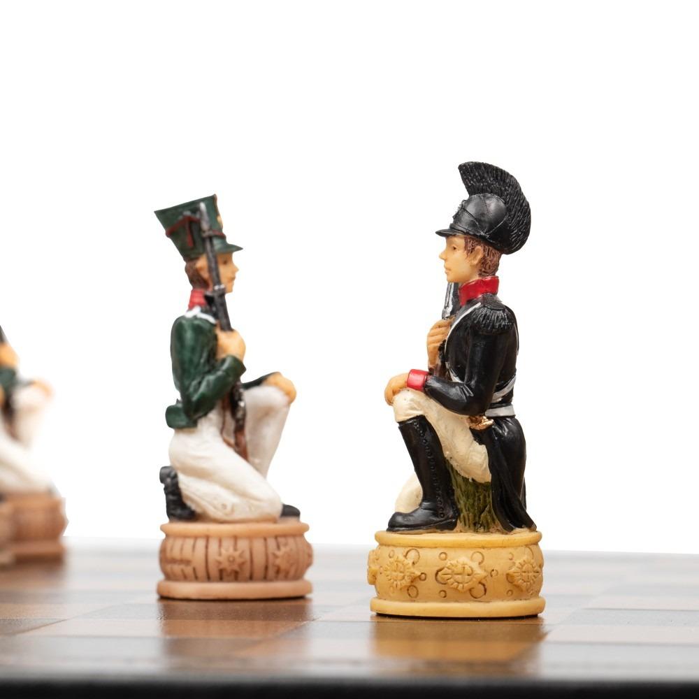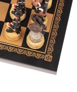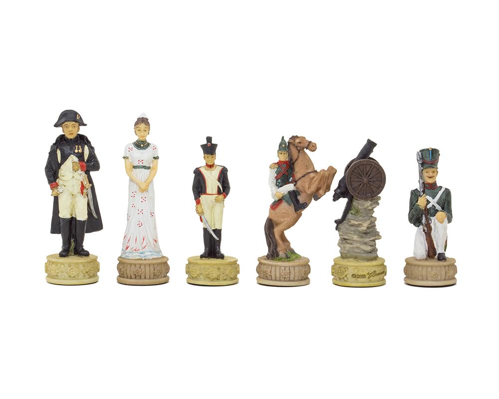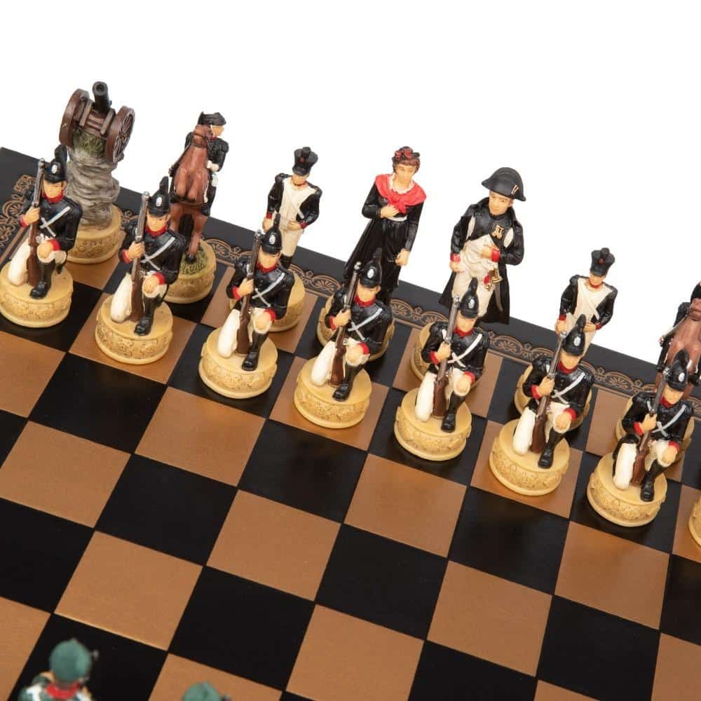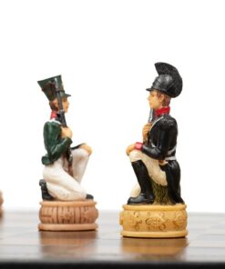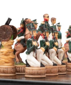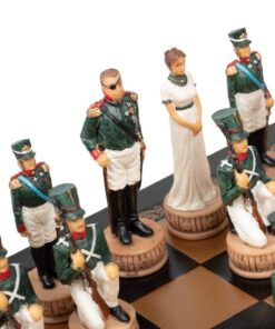 Ensemble Jeu d’Echecs Napoléon Campagne de Russie II en Résine et Echiquier en Similicuir Noir