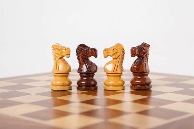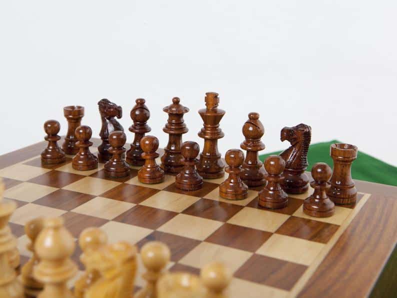 Ensemble Jeu d’Echecs et Echiquier en Bois d’Erable et de Buis – Fleur Noire