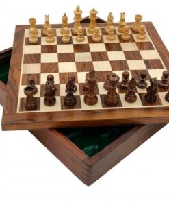 Ensemble Echiquier Bois d’Erable et Noyer et Jeu d’Echecs Bois Rose Doré et Buis – Sicilien