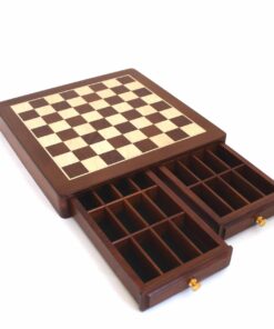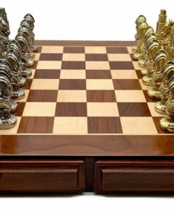 L’Ensemble Medieval IV Echiquier en Bois d’Erable & Jeu d’Echecs en Métal est un jeu de qualité supérieure, conçu et fabriqué en Europe. L’échiquier est conçu à partir de bois d’érable et mesure 46 x 46 x 6 cm. Les cases sont de 4,5 cm et comprennent un double tiroir de rangement intégré, tous deux faits à la main. Le jeu d’échecs est composé de métal massif, avec un roi mesurant 9,3 cm de haut et 3,1 cm de diamètre de base, avec 32 pièces au total. Il est soigneusement sculpté et ciselé à la main, et sa base est en feutre. Ce jeu haut de gamme offre une expérience de jeu authentique et durable. Il est parfait pour les joueurs débutants et avancés et s’adaptera à tout type de jeu. Off