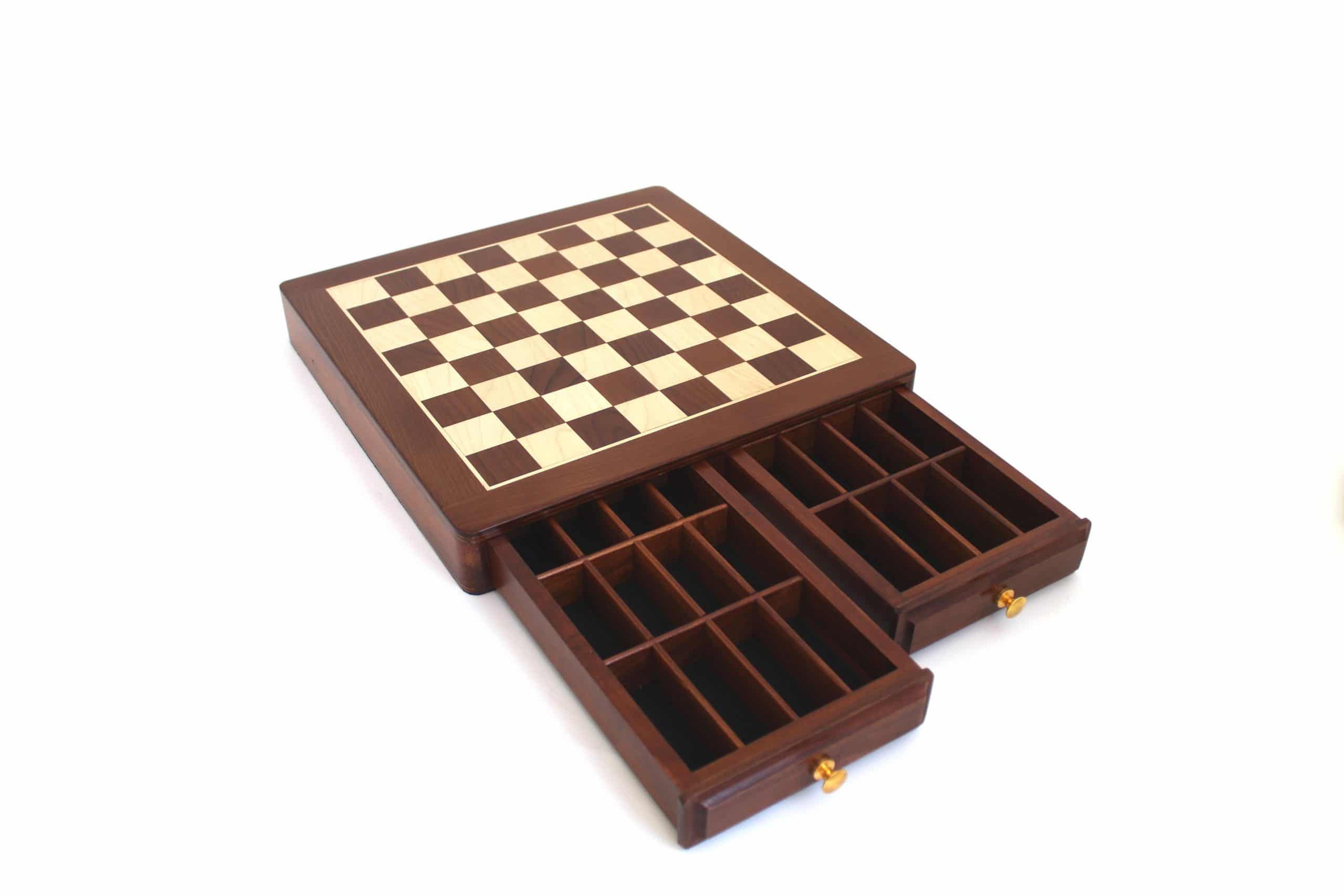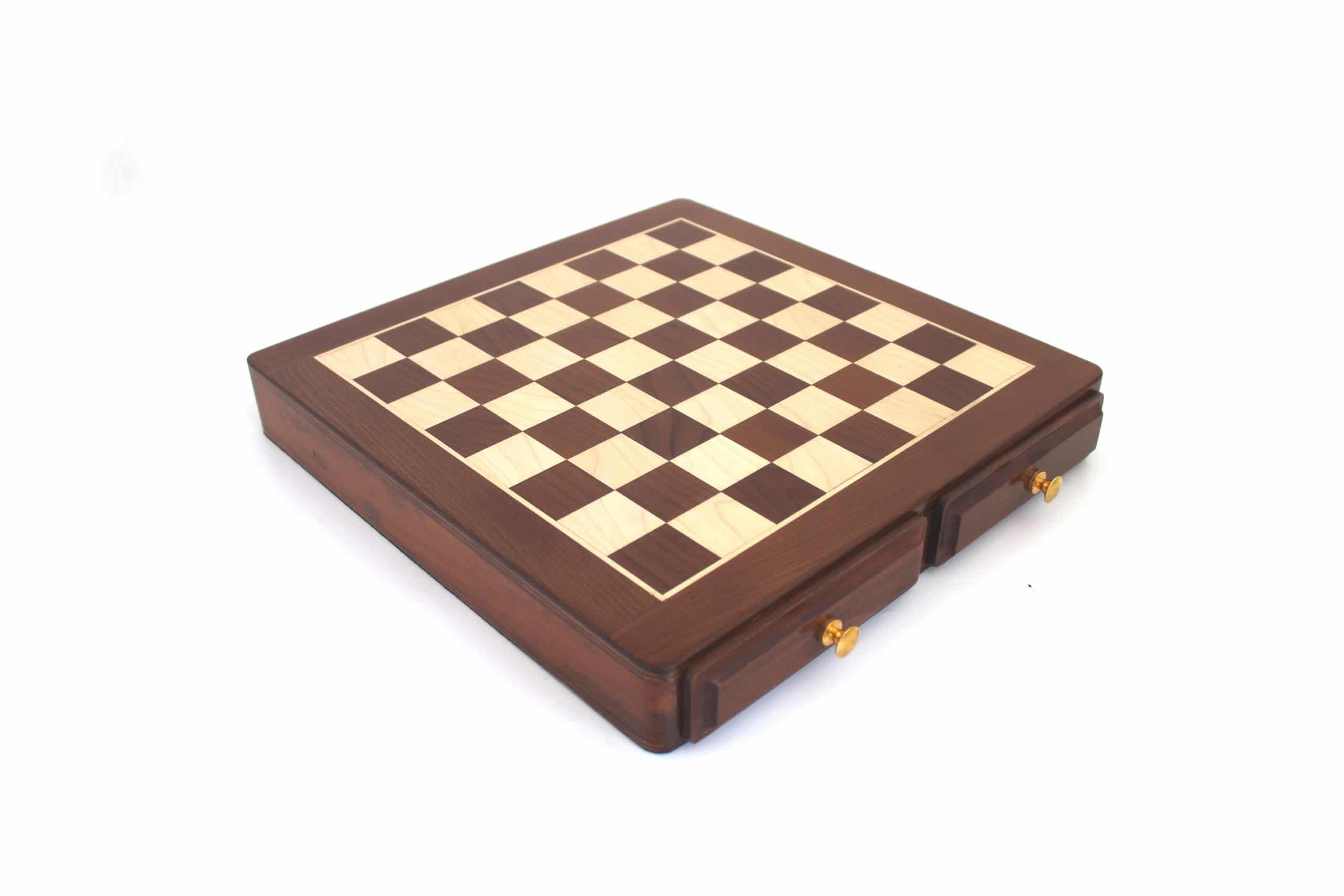 Ensemble Echiquier et Jeu d’Echec Windsor Cocoa Burl en Bois d’Ebène, d’Erable et de Buis