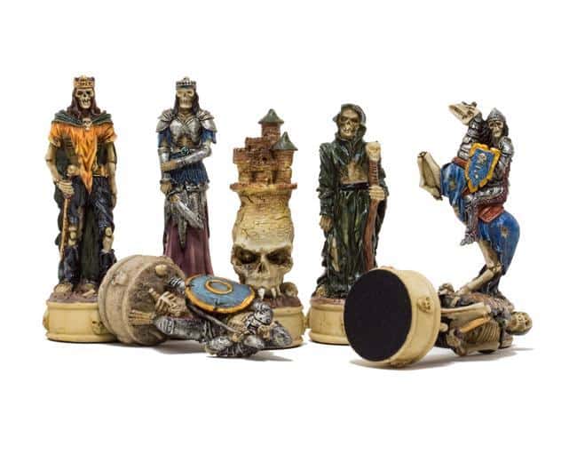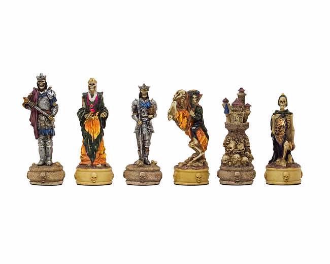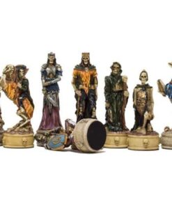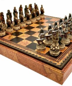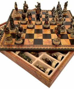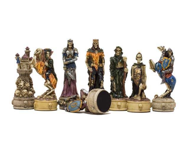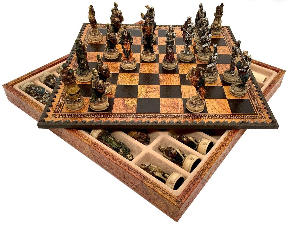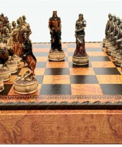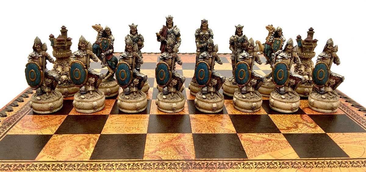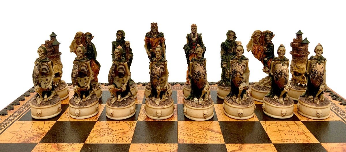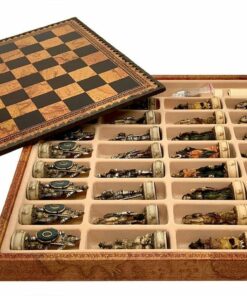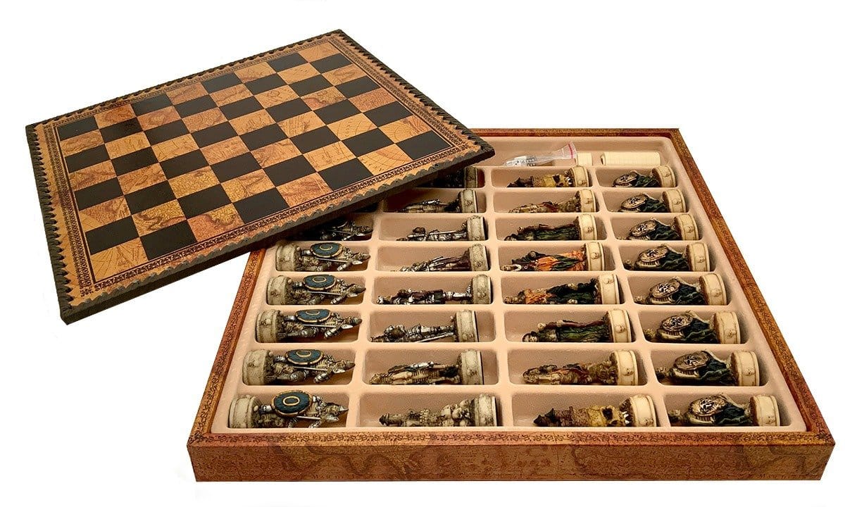 Ensemble Mort-Vivant III Echiquier et Jeu d’Echecs en Similicuir Ancien Monde avec Rangement et Pièces Peintes à la Main