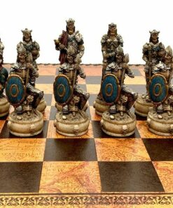Cet ensemble mort-vivant III Echiquier en similicuir Ancien Monde avec rangement et jeu d’échecs en résine peint à la main est un produit unique et magnifique. L’échiquier fait 35x35x3,5 cm et les cases sont de 3,5 cm. Il est fait à la main et a un rangement intégré sous le plateau. Le jeu d’échecs est fait de résine avec un roi de 8 cm de haut et un diamètre de base de 2,5 cm. Il y a 32 pièces, chacune avec une base feutrée. Les pièces sont sculptées et peintes à la main. La fabrication de ce produit est européenne. Cet ensemble est un produit de qualité qui apportera une touche élégante et unique à votre maison. Vous n’êtes pas prêt de trouver un ensemble aussi beau et unique ailleurs. Faisant l’objet d’