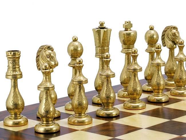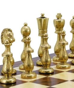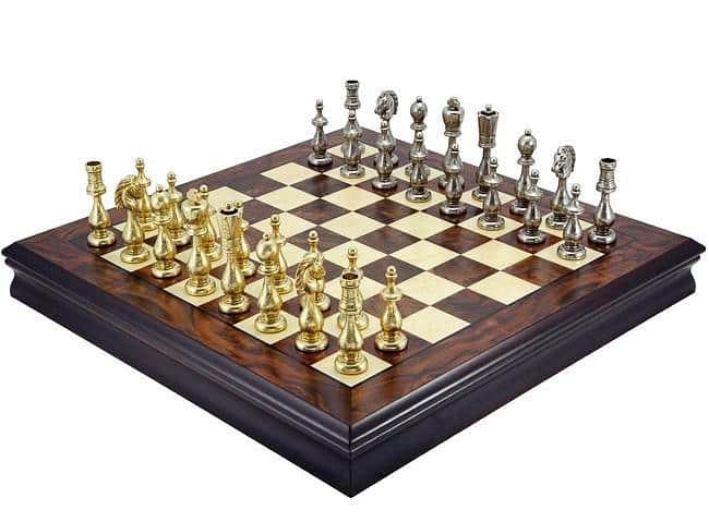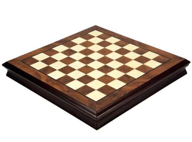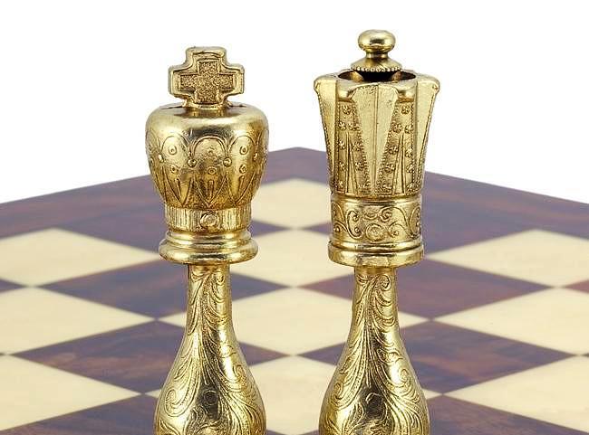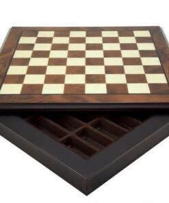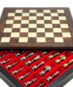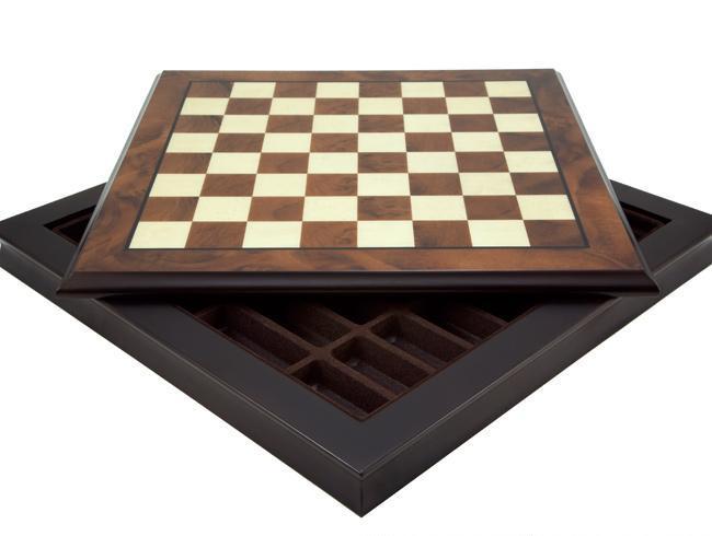 Ensemble Oriental Echiquier de Bois de Noyer & Erable avec Compartiment de Rangement & Jeu d’Echecs en Laiton
