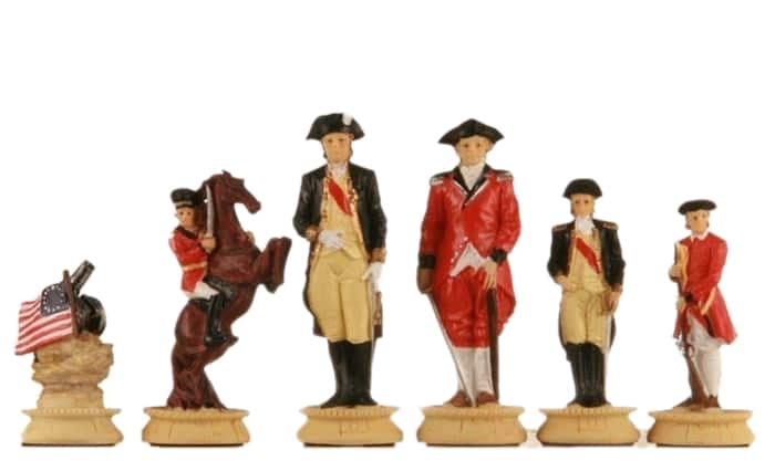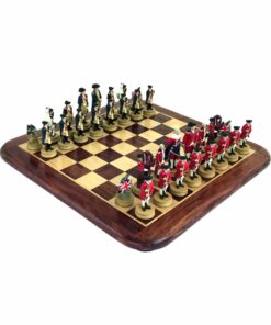 Ensemble Révolution Americaine II Jeu d’Echecs en Bois de Rose Doré et d’Erable & Echiquier en Etain