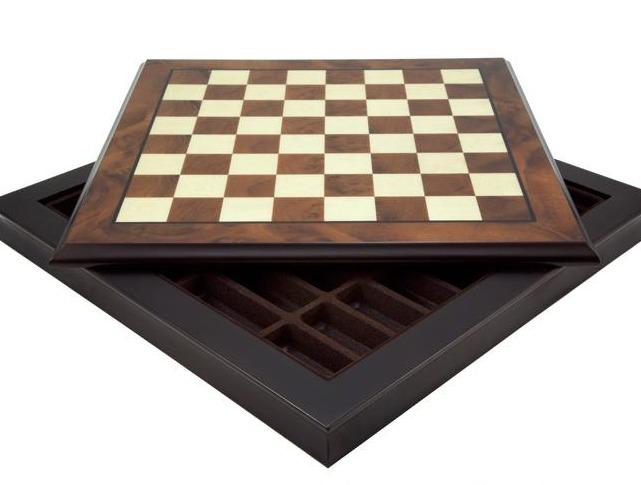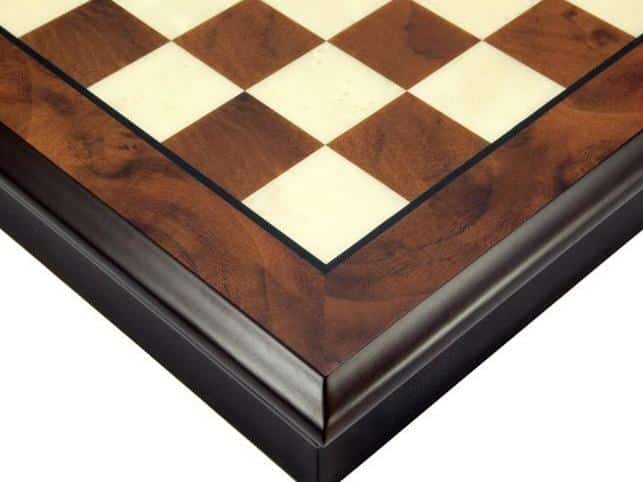 Ensemble Echiquier et Jeu d’Echec Windsor Cocoa Burl en Bois d’Ebène, d’Erable et de Buis