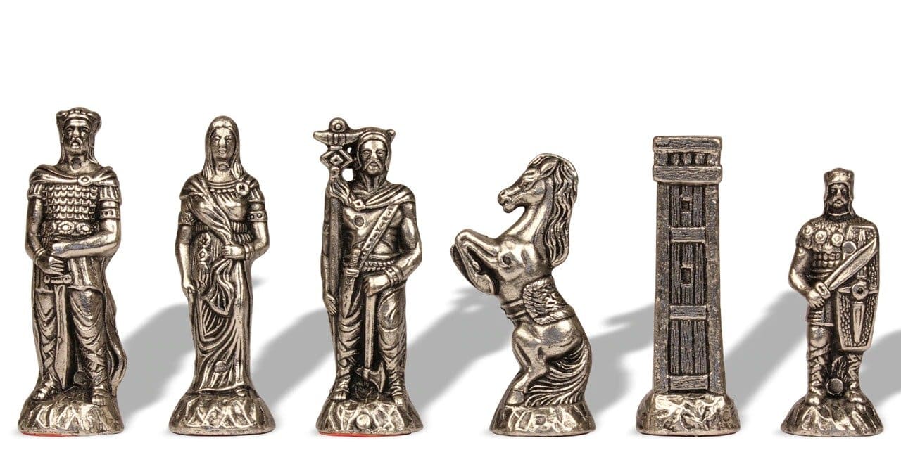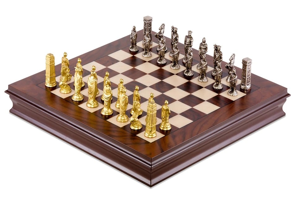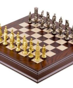Ensemble Romains vs Barbares III | Echiquier en Bois de Noyer et d’Erable & Jeu d’Echecs en Métal Massif