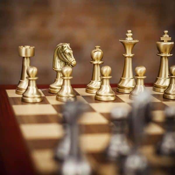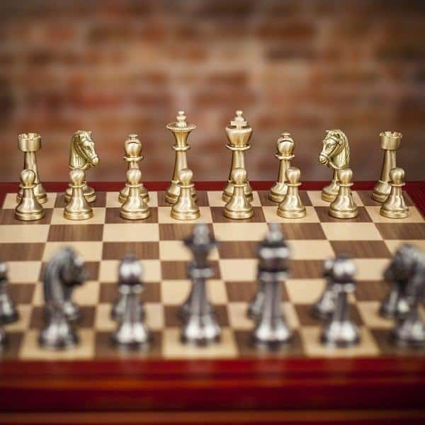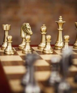 Ensemble Staunton Echiquier en Bois de Noyer et Erable + Pièces d’Echecs en Laiton Massif – Qualité Supérieure