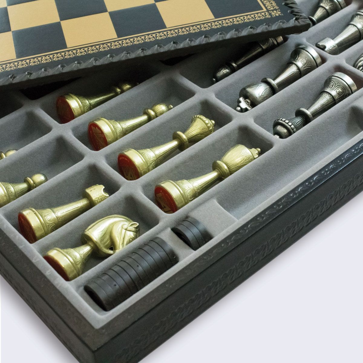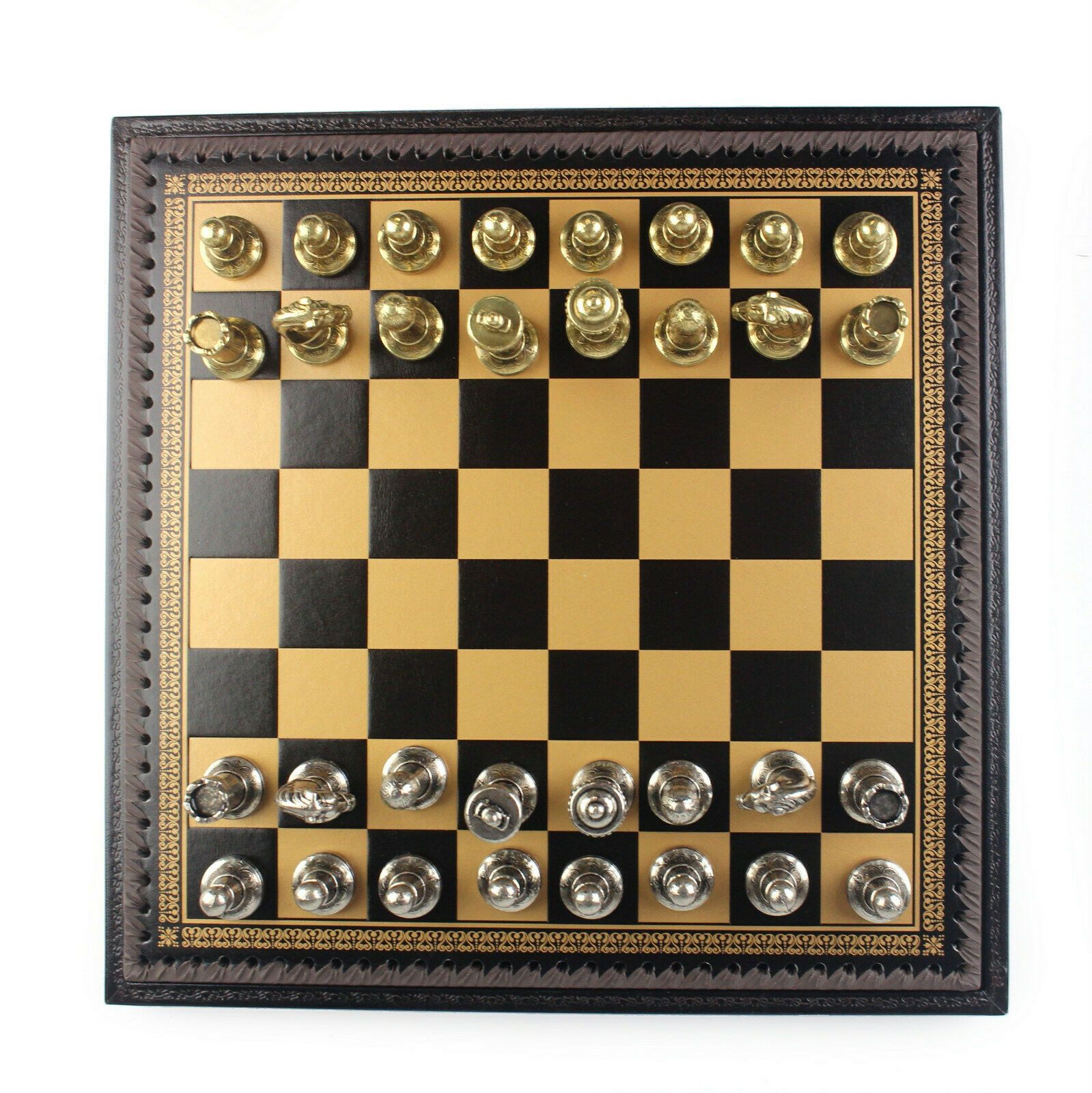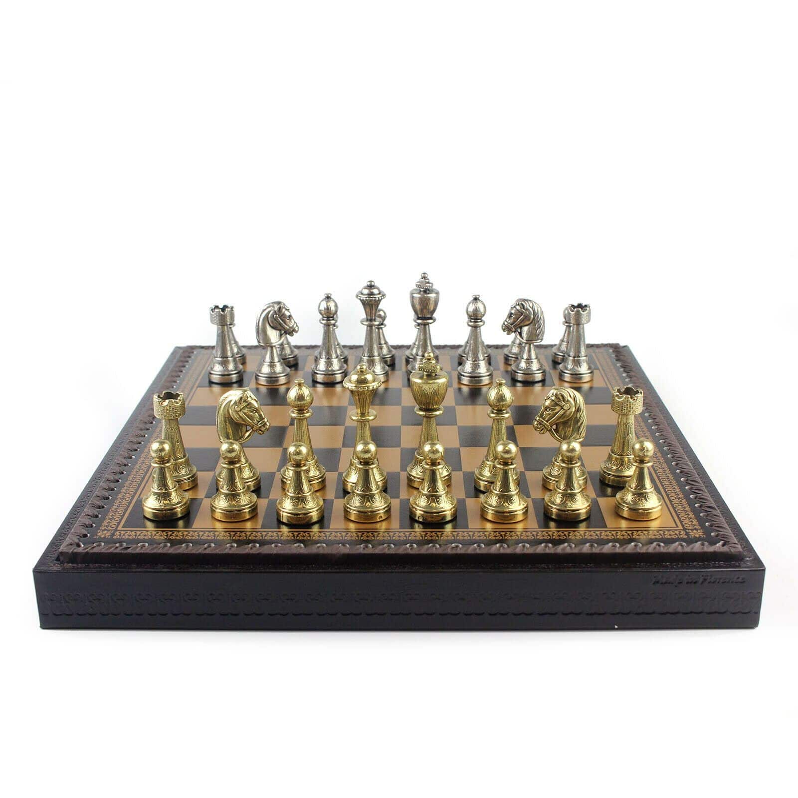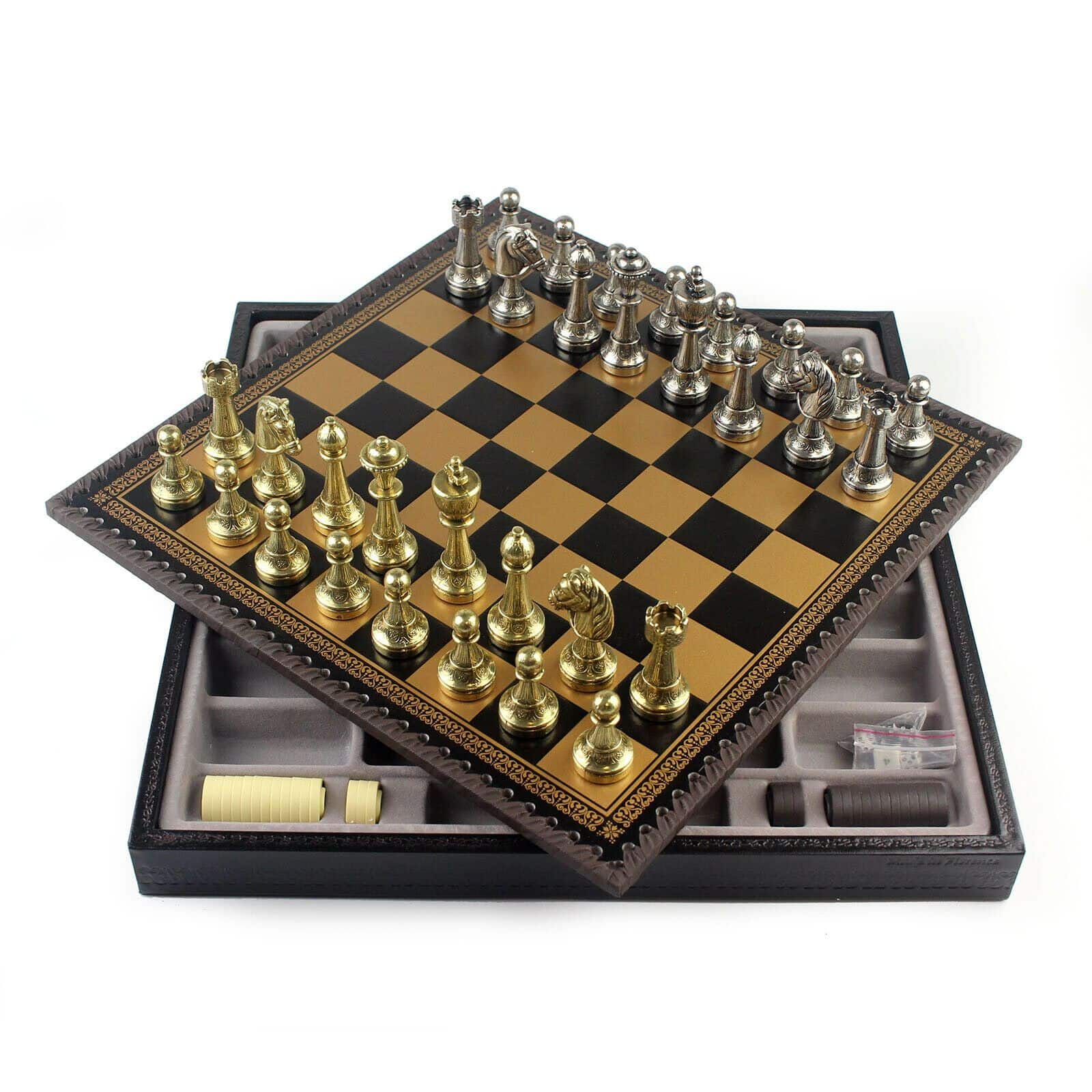 Ensemble Staunton Mix II Echiquier avec Compartiment de Rangement Intégré & Jeu d’Echecs en Métal Massif – Similicuir – Idéal pour Les Joueurs Professionnels et Débutants