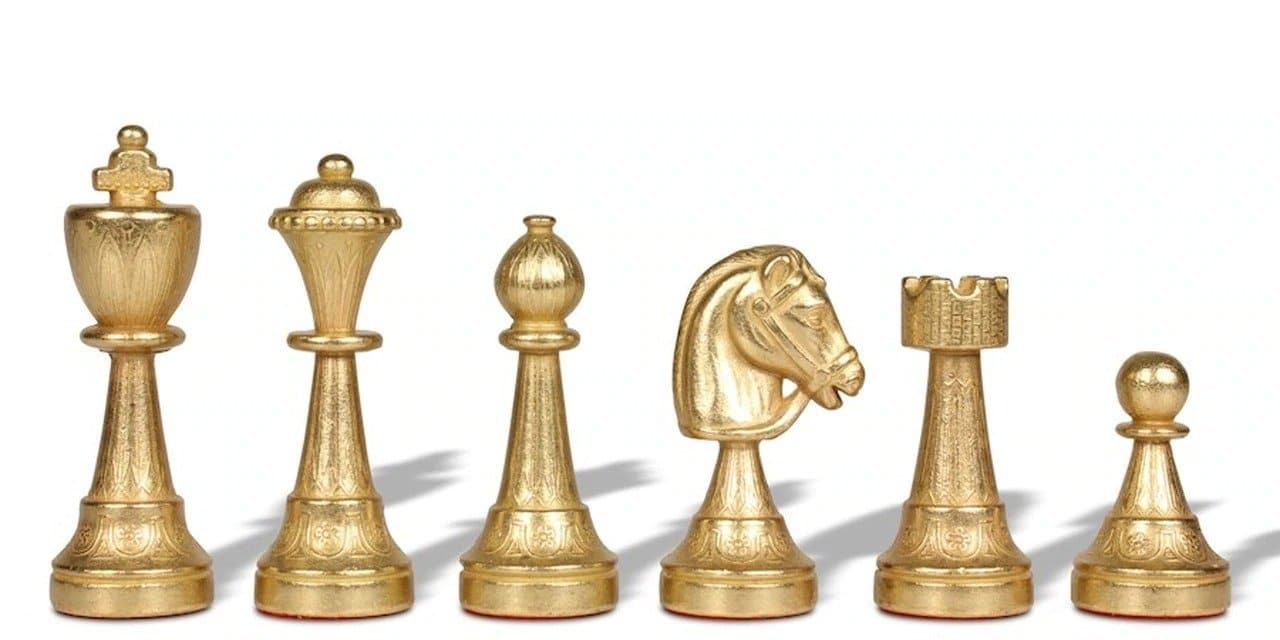 Ensemble Jeu d’Echecs Haut de Gamme en Bois d’Orme et d’Erable avec Pièces Plaquées Or et Argent