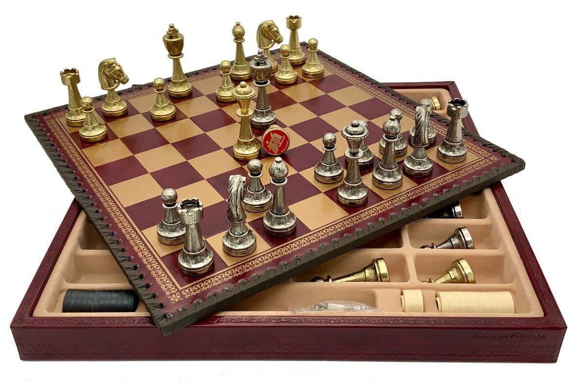 Ensemble Staunton Mix V Echiquier Rouge avec Rangement et Jeu d’Echecs en Métal | Meilleur Ensemble d’Échecs pour Jouer et Collectionner