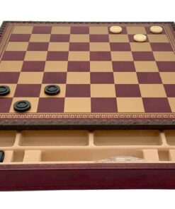 L’Ensemble Staunton Mix V Echiquier Rouge avec Rangement et Jeu d’Echecs en Métal est parfait pour améliorer votre expérience d’échecs. L’échiquier est fabriqué en similicuir avec une finition faite à la main et un rangement feutré. Il a une taille de 35 x 35 x 4 cm et des cases de 3,5 cm. Le jeu d’échecs est fabriqué en métal massif avec des pièces sculptées et ciselées à la main. Le roi mesure 7,5 cm de hauteur avec un diamètre de base de 2,5 cm. La base est feutrée pour une bonne stabilité. Les matériaux et la fabrication sont européens, vous offrant une qualité supérieure. Cet ensemble est parfait pour améliorer votre jeu d’échecs. Profitez-en aujourd’hui !