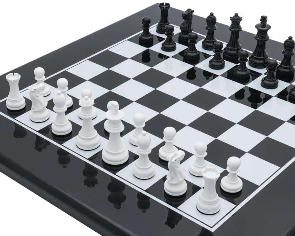 Vous recherchez un jeu d’échecs traditionnel et moderne à la fois ? Alors vous êtes au bon endroit ! Notre Ensemble Jeu d’Echec Bicolore Noir et Blanc Moderne en Bois est parfait pour vous. L’échiquier est fabriqué en bois laqué noir et blanc et mesure 50 x 50 cm avec des cases de 4,5 cm. La finition est faite à la main et les pièces sont sculptées à la main avec une base en feutre. Chaque pièce a une hauteur de 7,6 cm et un diamètre de base de 3,4 cm. Fabriqué en Europe et de grande qualité, ce jeu d’échecs est parfait pour les débutants et les joueurs experts. Commandez votre Ensemble Jeu d’Echec Bicolore Noir et Blanc Moderne en Bois dès aujourd’hui !.
