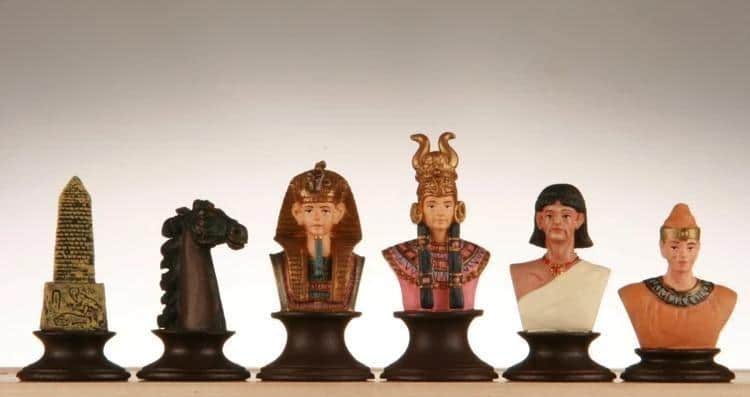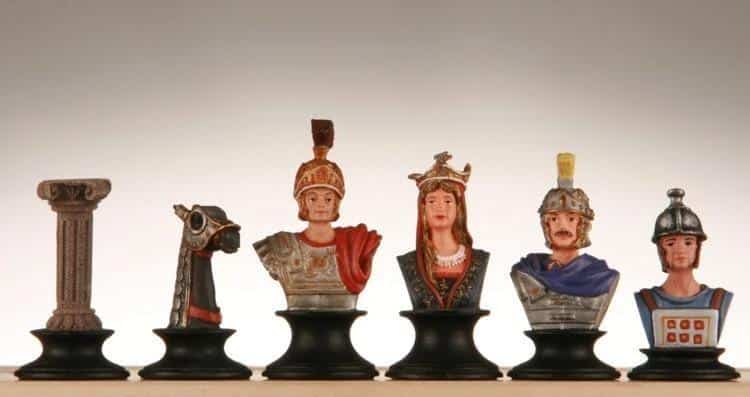 Jeu d’Echecs en Etain Peint à la Main – Bustes Romains vs Egyptiens