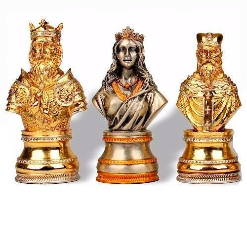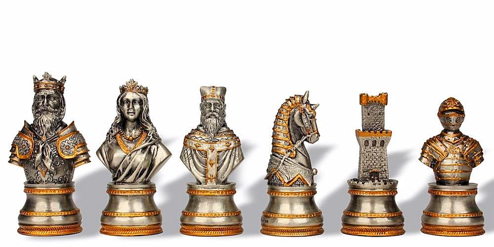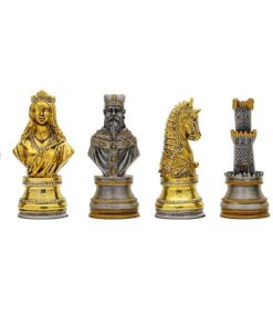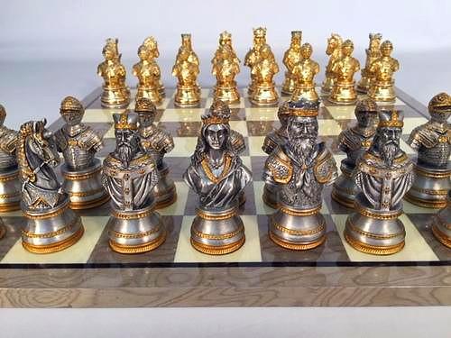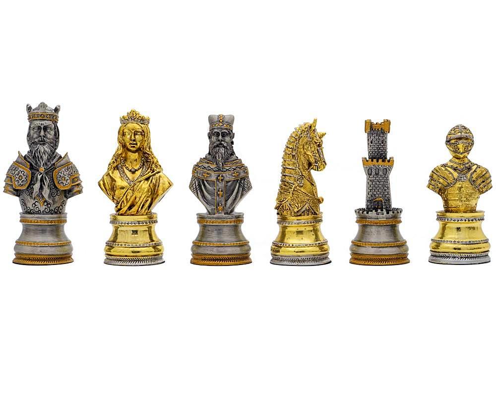 Jeu d’Echecs en Etain Plaqué Or et Argent Buste Médiéval – Jeu de Stratégie Idéal pour Collectionneurs