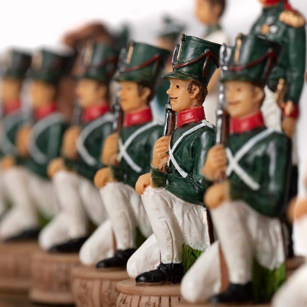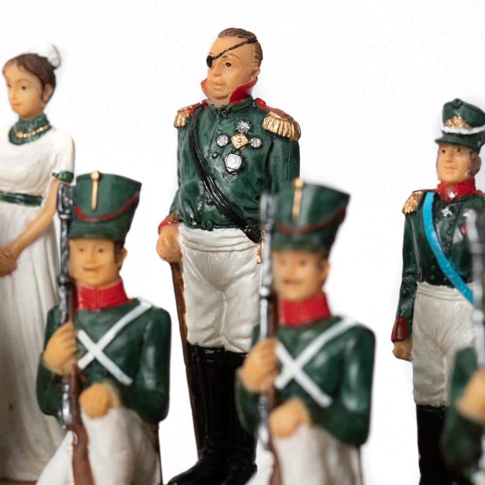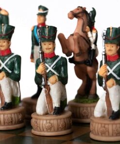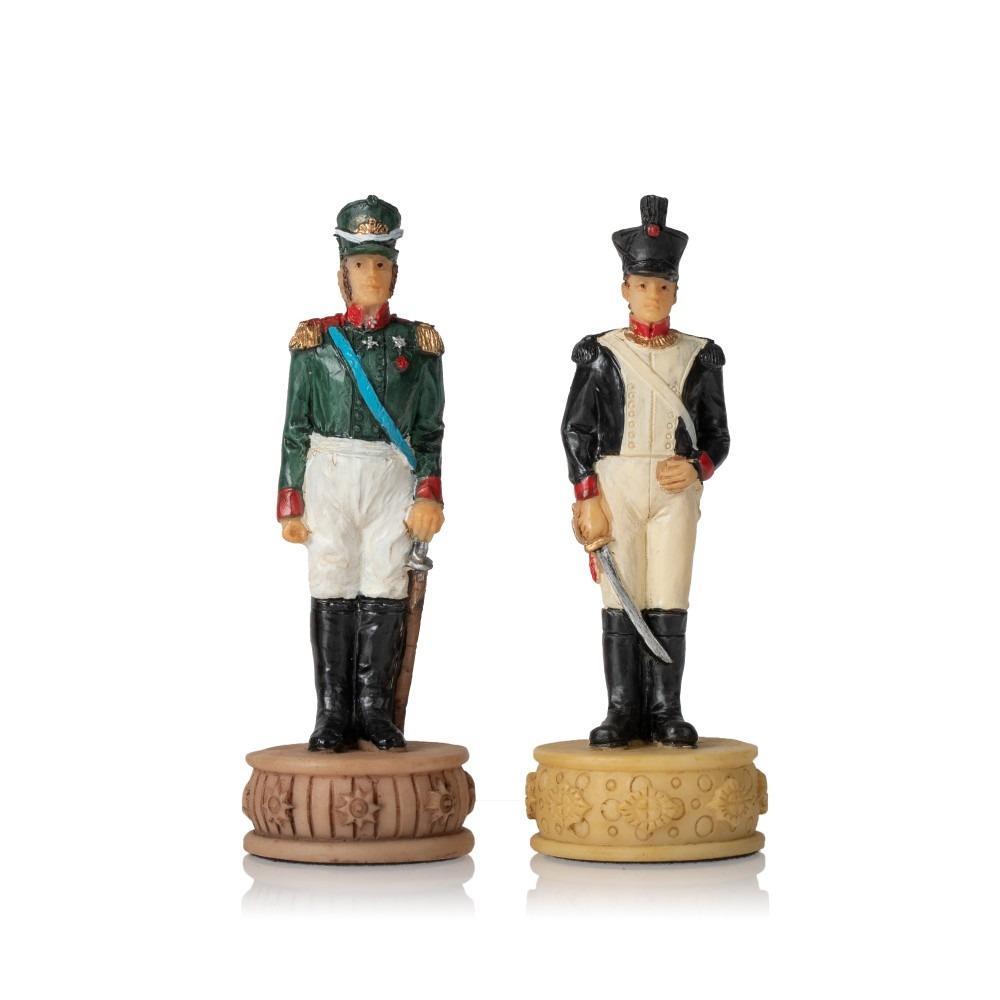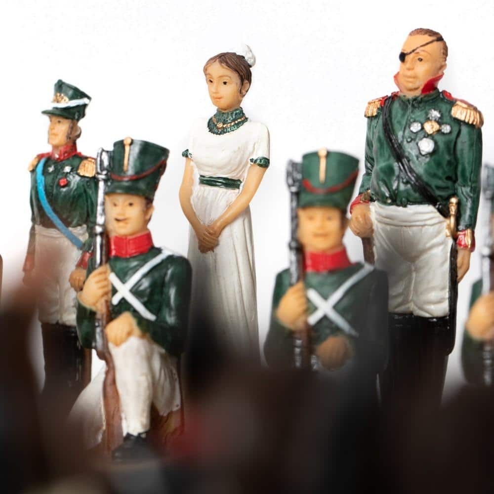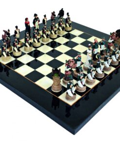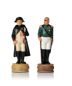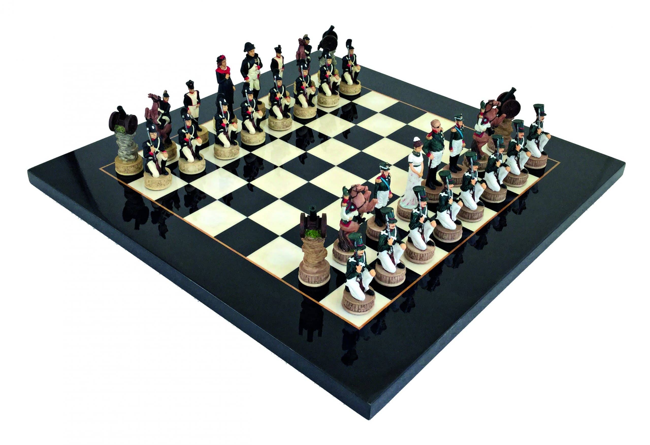 Jeu d’Echecs en Résine et Echiquier en Bois d’Erable Noir de l’Ensemble Napoléon Campagne de Russie III